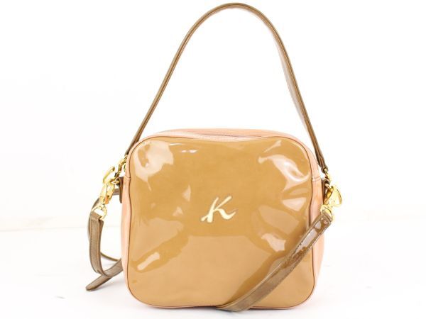 キタムラ Kitamura MOTOMACHI エナメル 2WAY ハンドバッグ ショルダーバッグ お洒落な ベージュ