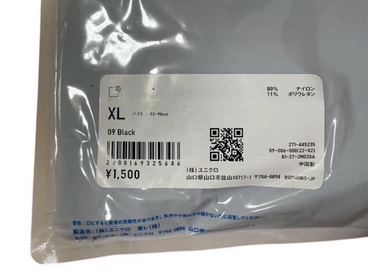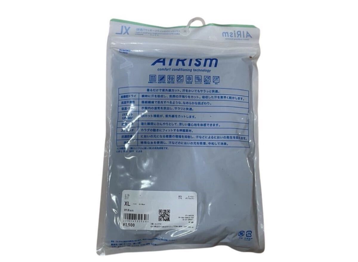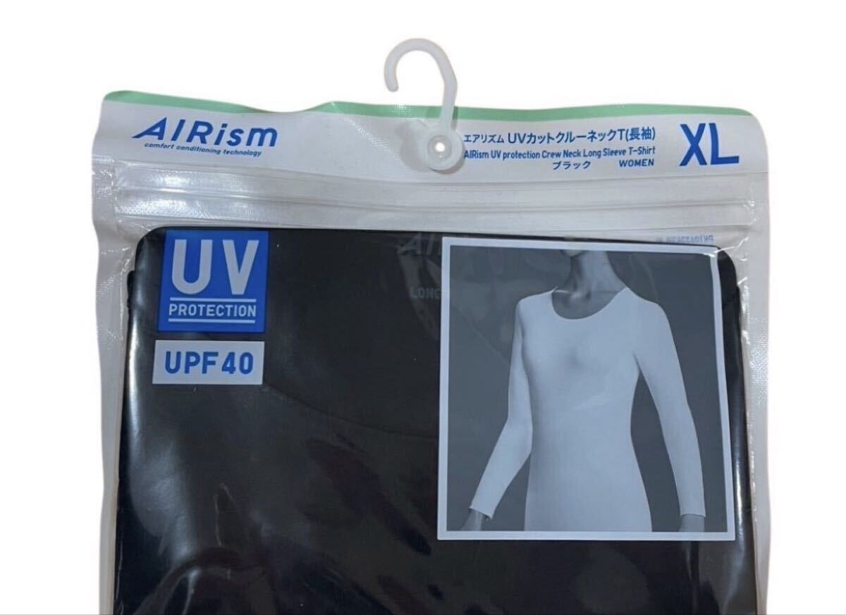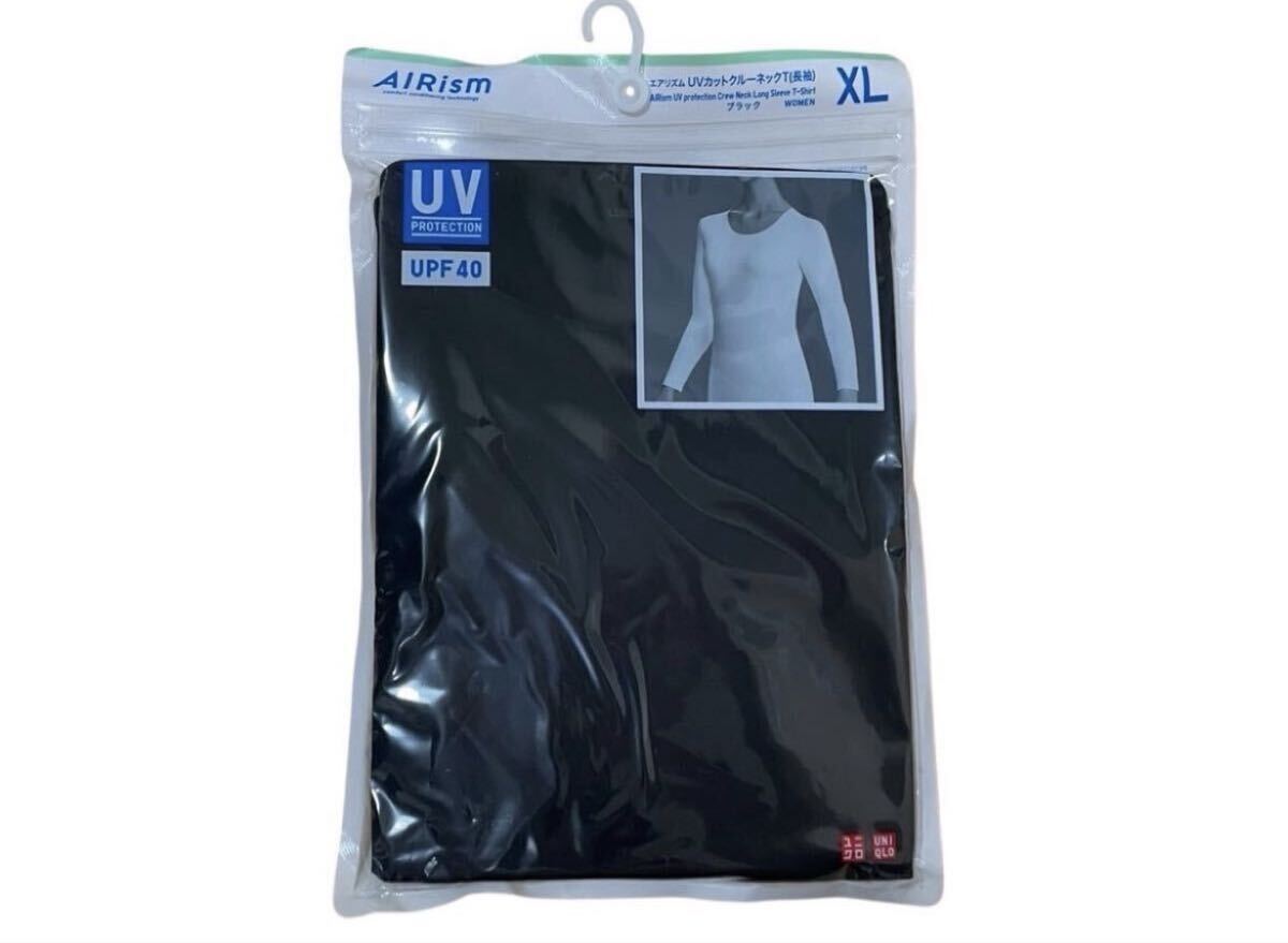 AIR RISM UVカットクルーネックT 長袖 レディース XL UPF40 ユニクロ ブラック
