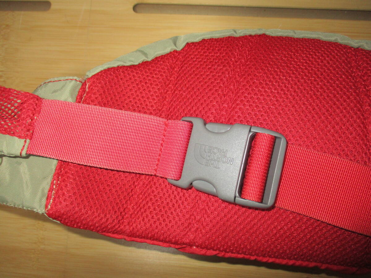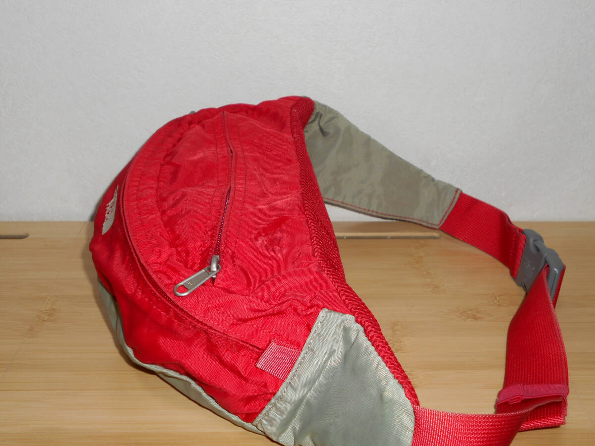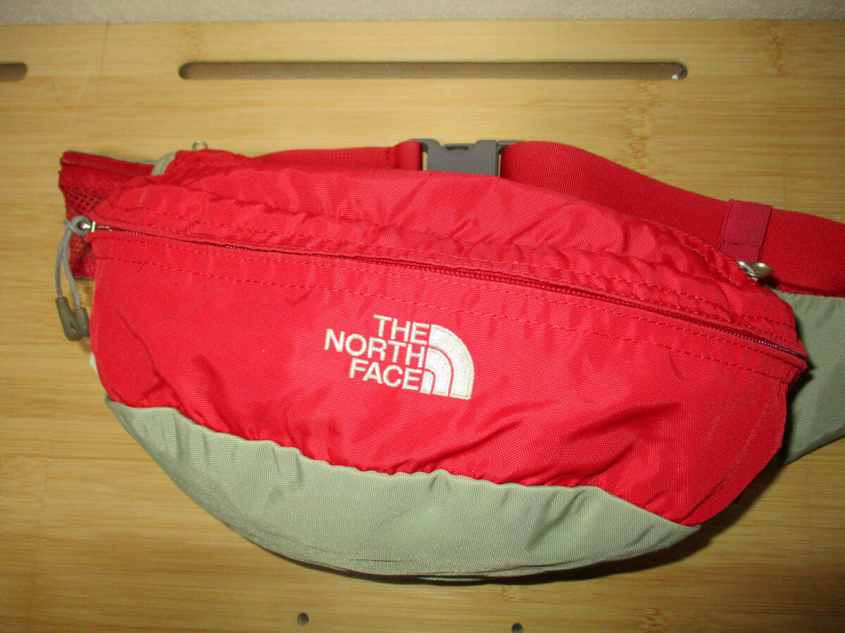 THE NORTH FACE ノースフェイス ウエストバッグ ウエストポーチ NM07106 赤 です。(株) ゴールドウインの本物です。色は赤系です。色は画像でご判断ください。(画像9)バックのジップの持ち手の引っ張り部分が1か所取れており。キーホルダーを取り付けております。