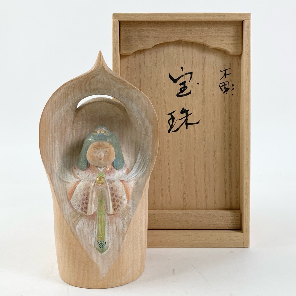 商品名 | 木彫作家 瀧川佐智子 作 木彫 宝珠 共箱 仏像 天女 置物 置物 オブジェ 4158620 |