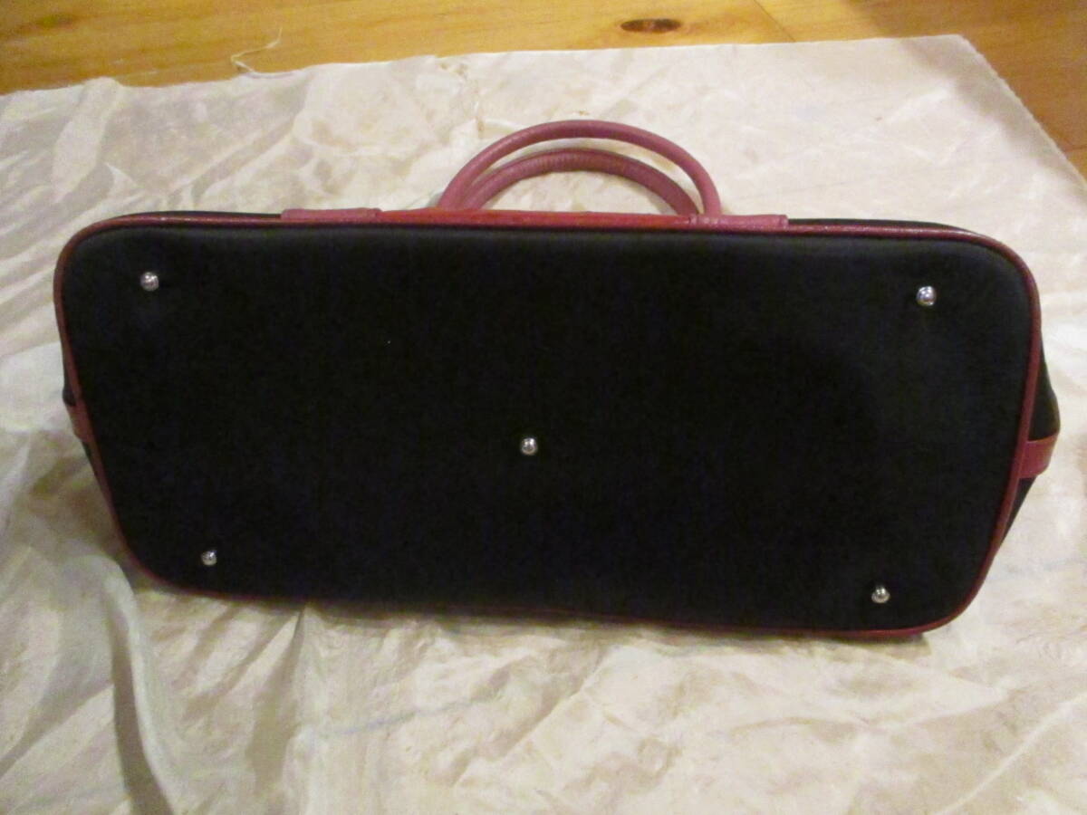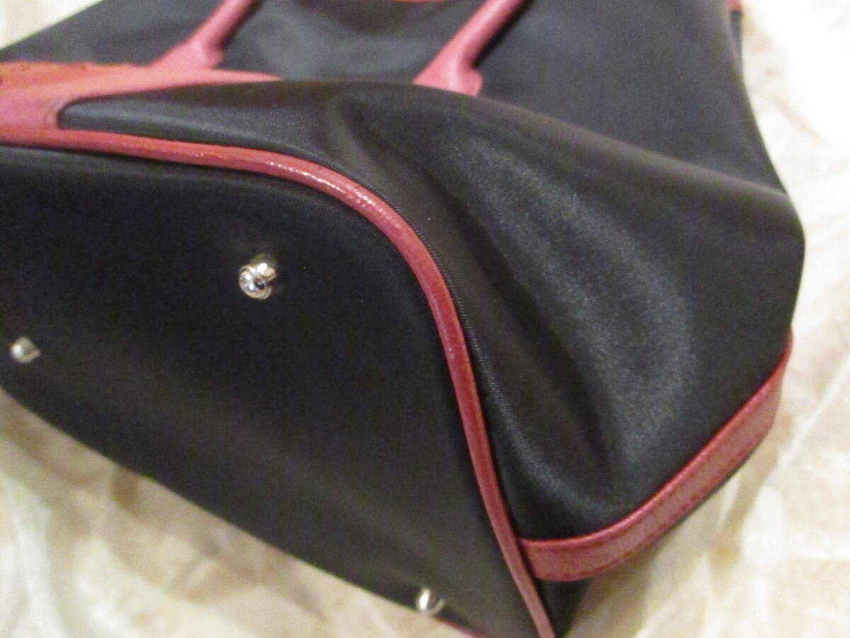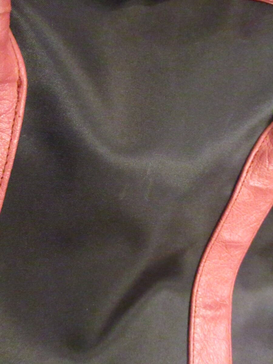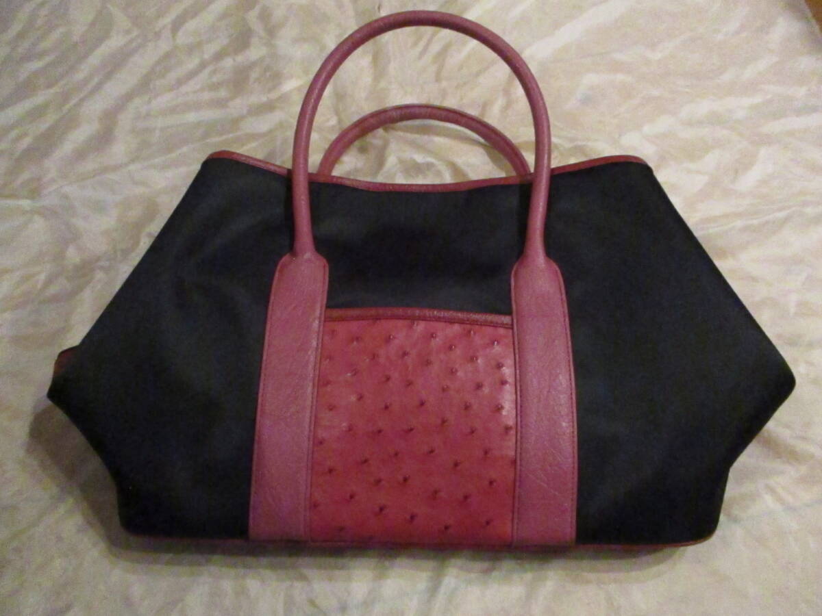 | □オーストリッチレザー ナイロントートバッグ ハンドバッグ ブラック×レッド×ピンク 本革 リアルレザー 美品□ | |||||||||||
