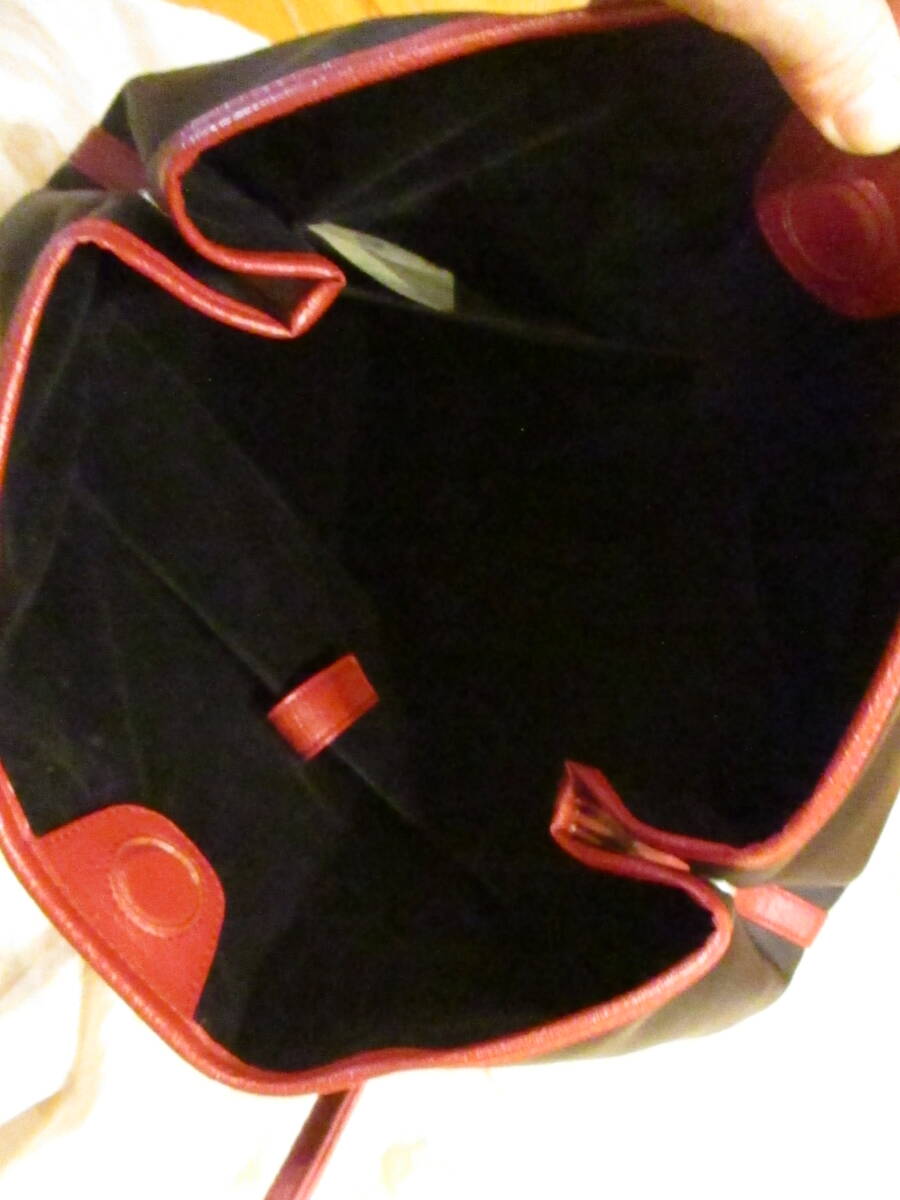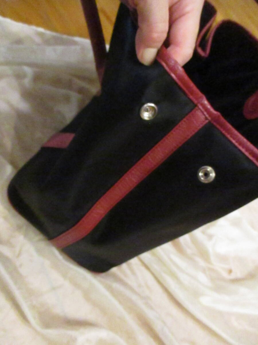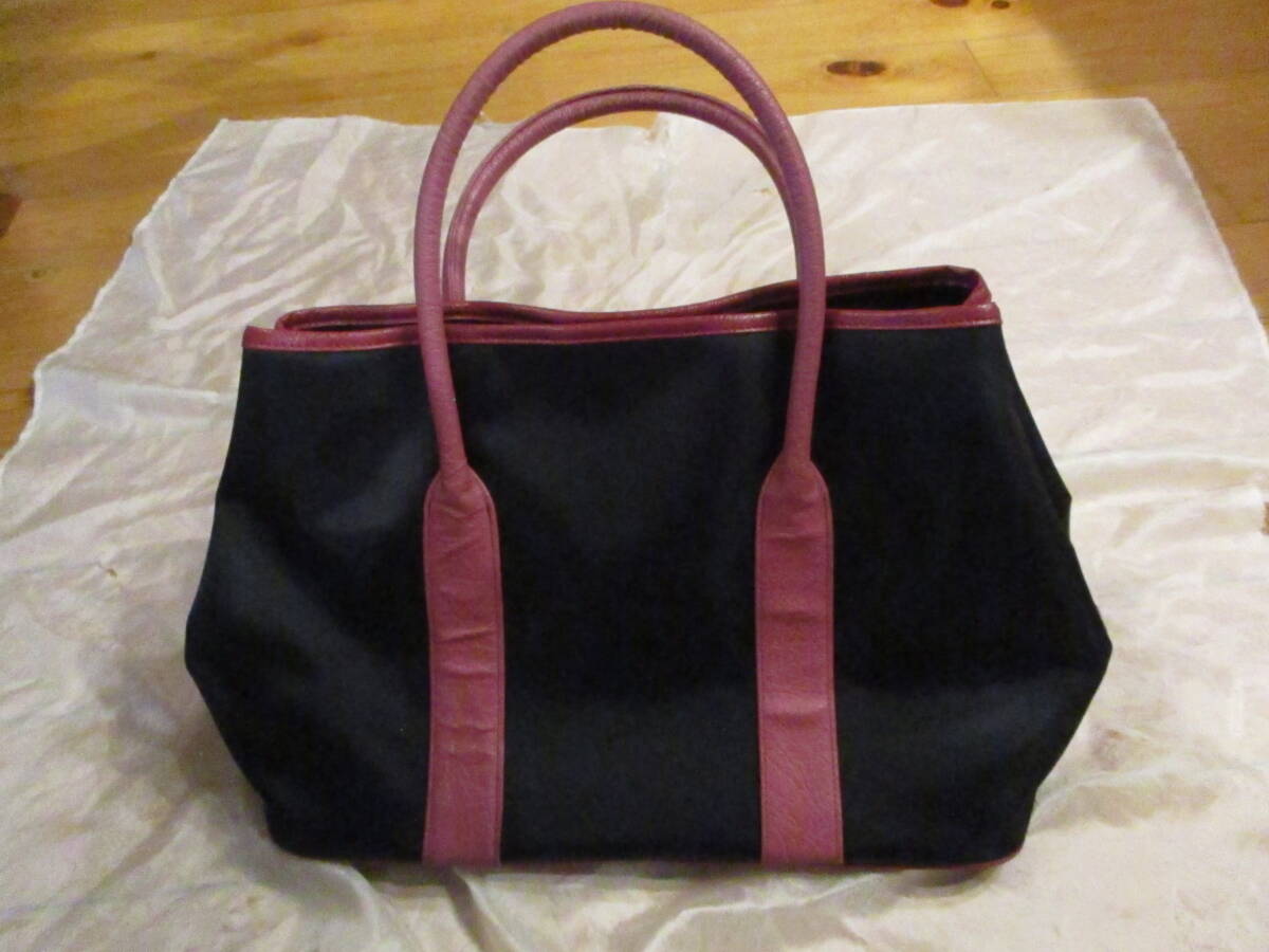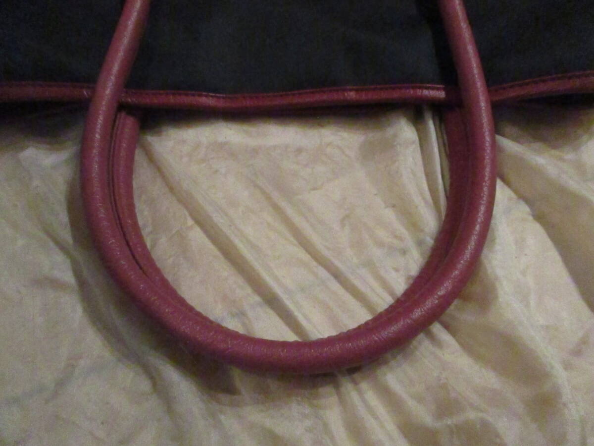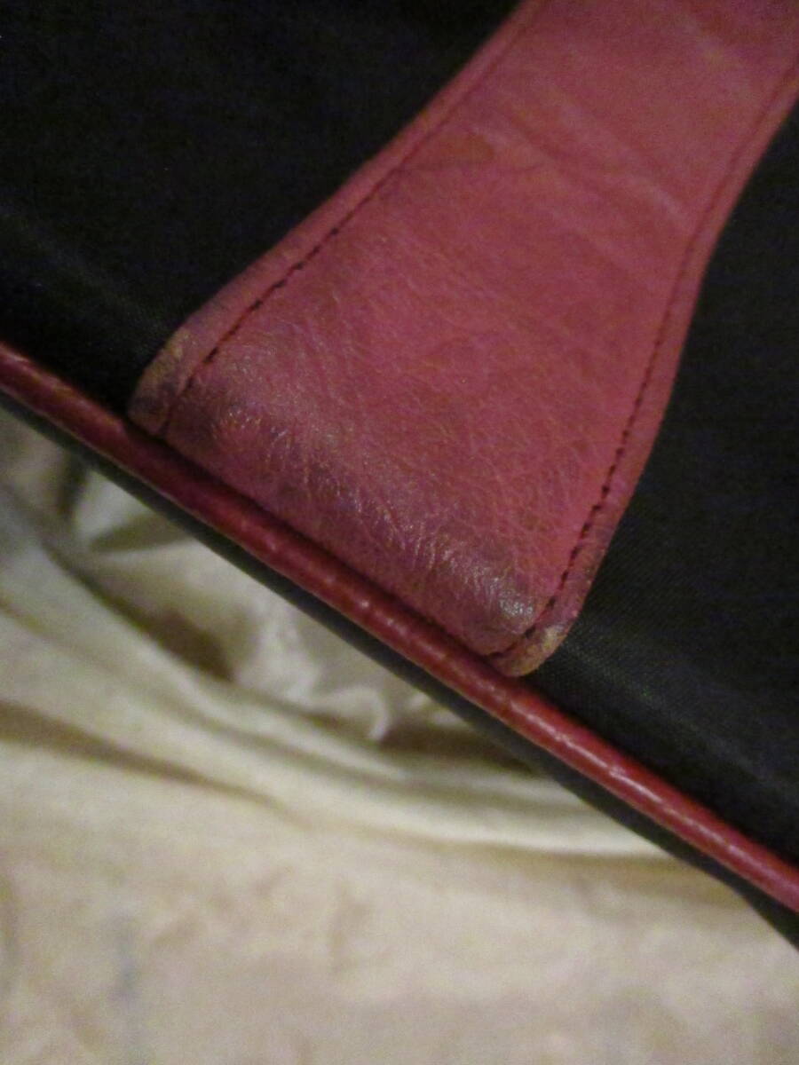 | □オーストリッチレザー ナイロントートバッグ ハンドバッグ ブラック×レッド×ピンク 本革 リアルレザー 美品□ | |||||||||||