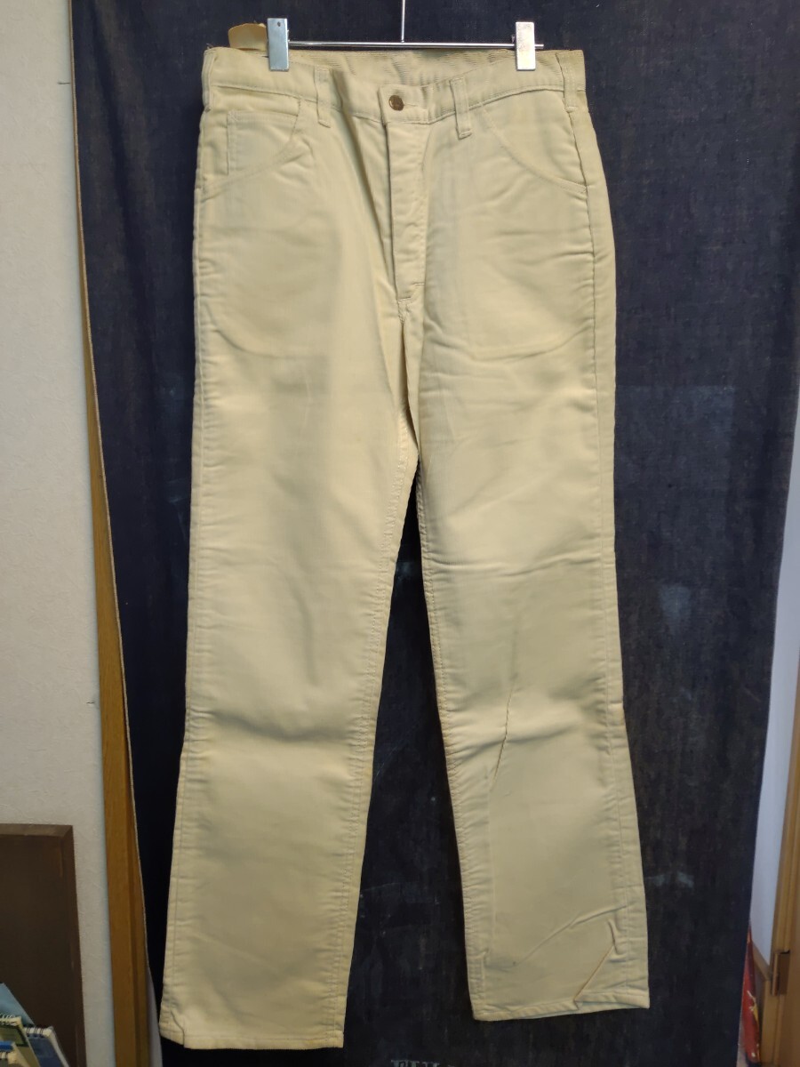 未使用、デッドストックですが、長年の保管品のため、汚れ、日焼け、シミ、など多数あります、写真にてご判断いただきノークレームにてお願いいたします、サイズはW32で、ウエスト82cm、股下84cm、モモ幅(股の位置)31cm、裾幅23cm、多少の誤差はお許しください、ヤマト着払いにて発送いたします。