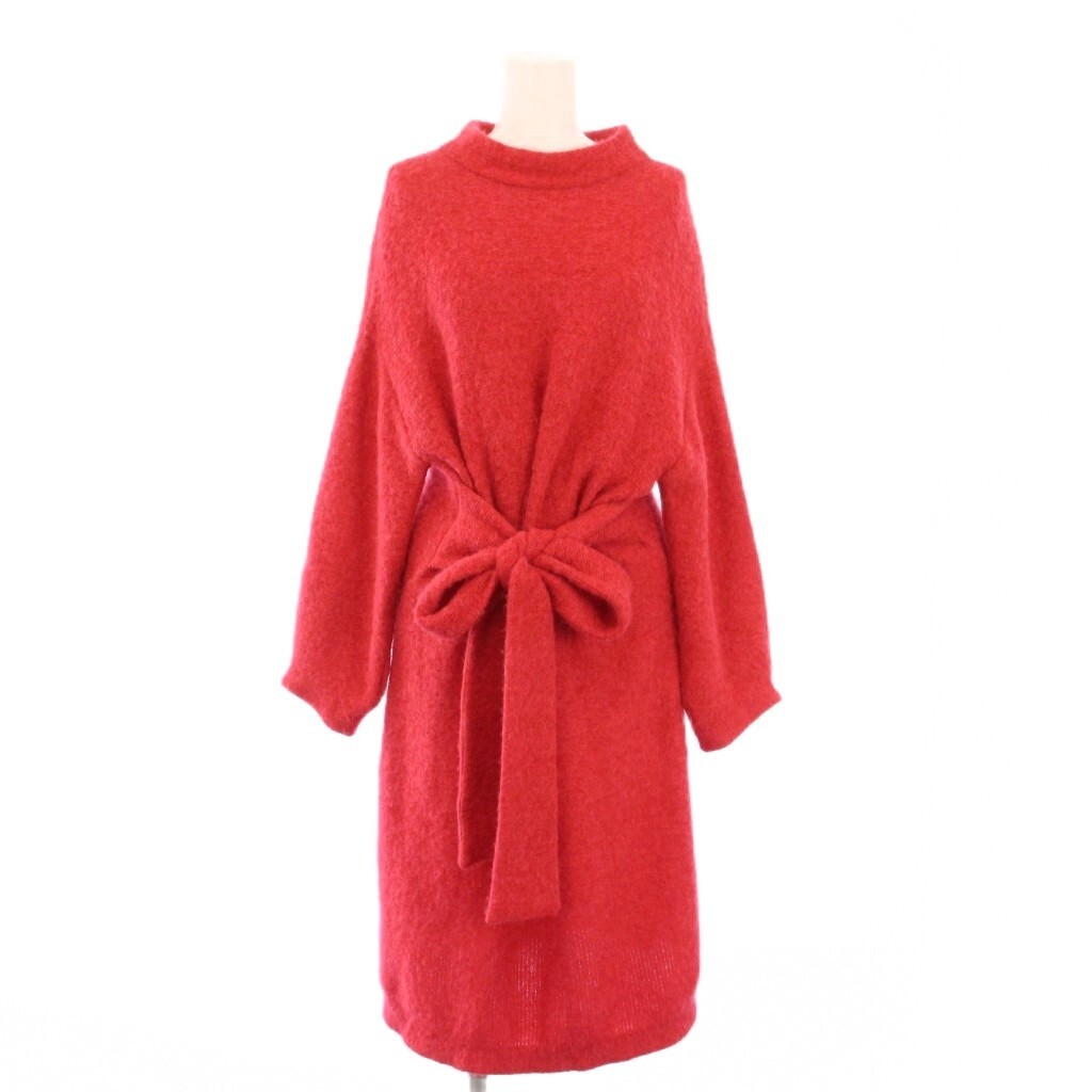 シビラ SYBILLA ニットワンピース ひざ丈 長袖 ボトルネック 無地 ウール混 アルパカ混 M ピンクレッド /BB レディース