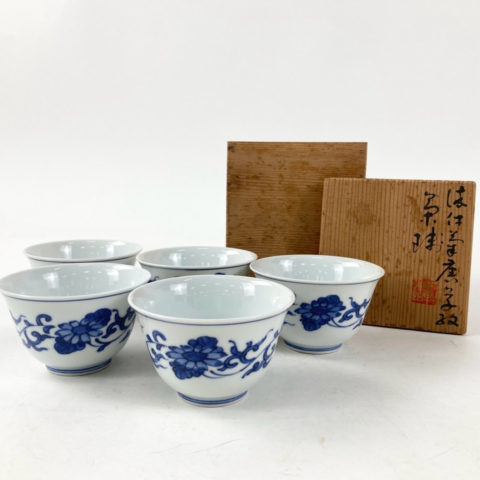商品名 | 三浦竹軒 染付唐草紋茶碗 煎茶碗 5客揃 共箱 煎茶器 真作 茶道具 4169975 |