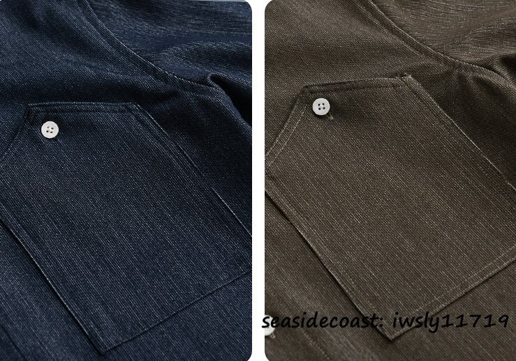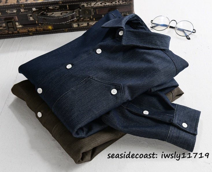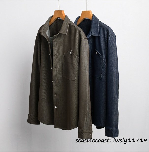 人気新品*デニムシャツ デニムジャケット 春秋 長袖シャツ シャケット アウター レトロ シンプル 無地 ストリート トップス 珈琲色 L