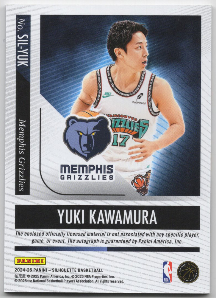 2024-25 Panini Silhouette Silver RPA RC Rookie Patch Autograph /25 #SIL-YUK Grizzlies Yuki Kawamura