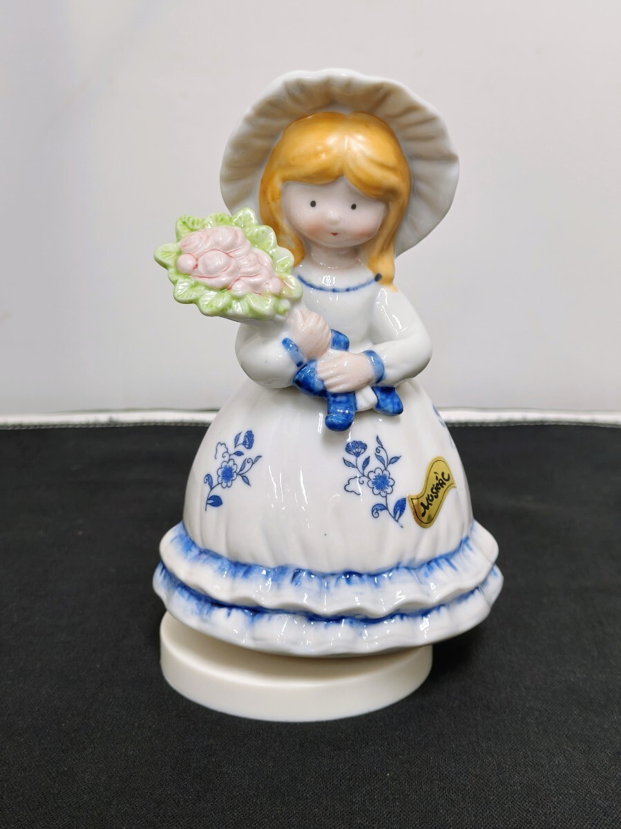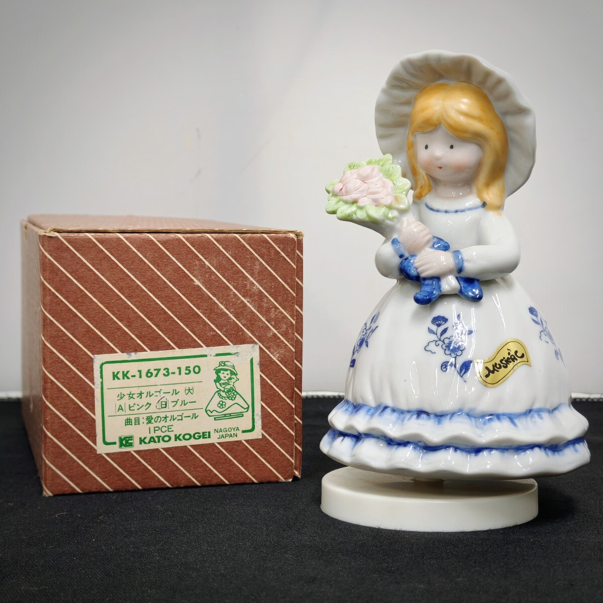 ☆未使用品☆ 加藤工芸 少女 オルゴール 陶器 昭和 レトロ アンティーク 箱付き 愛のオルゴール (09307T