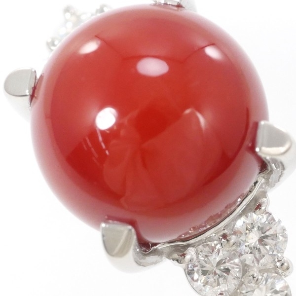 PT900 リング 指輪 10号 サンゴ ダイヤ 0.23 鑑別書 総重量約6.1g 中古 美品 送料無料 | |