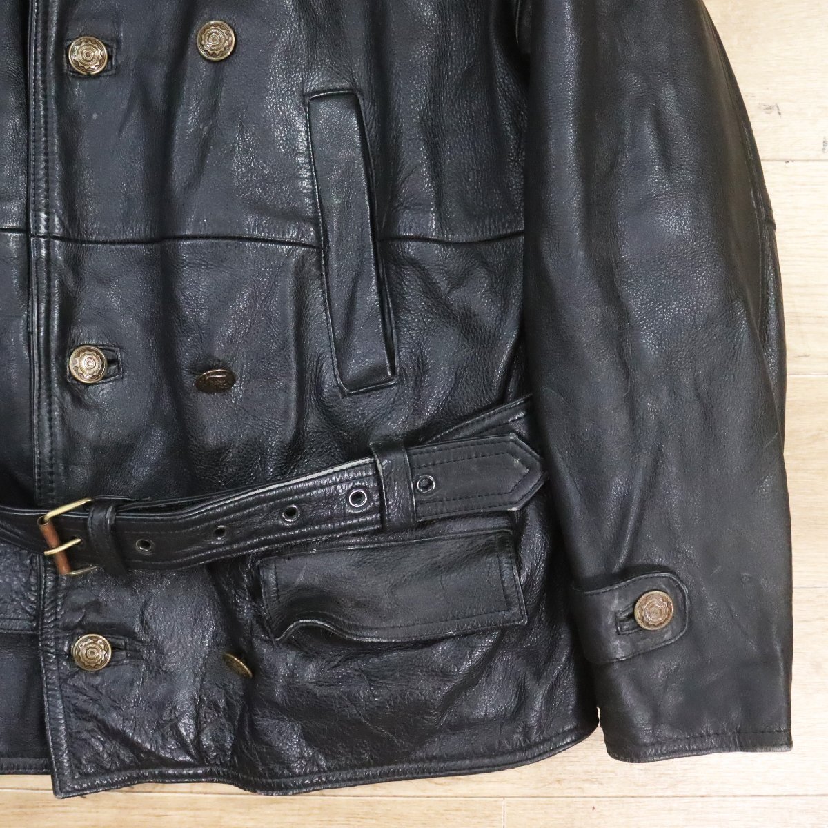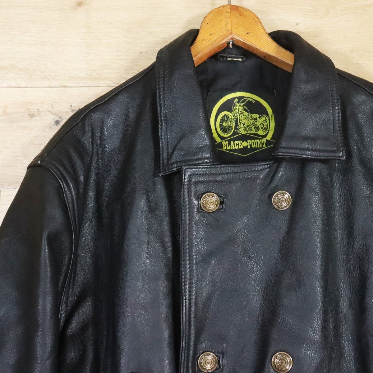 D11Y/D7.11-5 BLACK POINT レザージャケット 本革 革ジャン 皮ジャン ダブルブレスト ライダース ブラック XXLサイズ メンズ