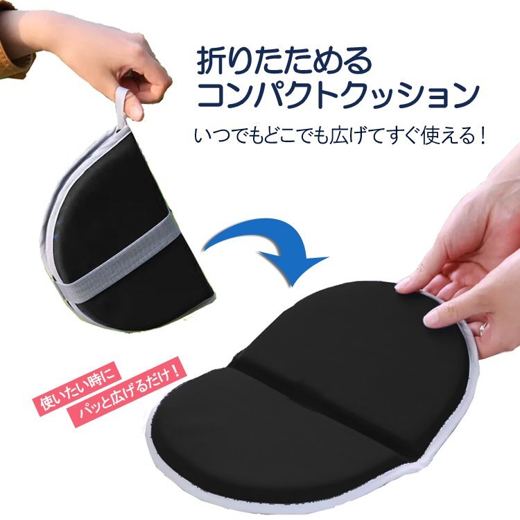 ◆折りたたみクッション 座布団 低反発 水洗い可 持ち運び便利 屋外 敷物 クッションマット 軽量 滑り止め付き 折りたたみマット スポーツ観戦 アウトドア レジャー オフィス 旅行 ピクニック 運動会などに【ブラック】FCS29C