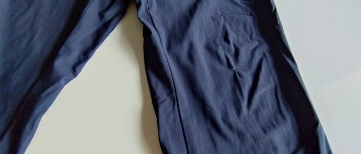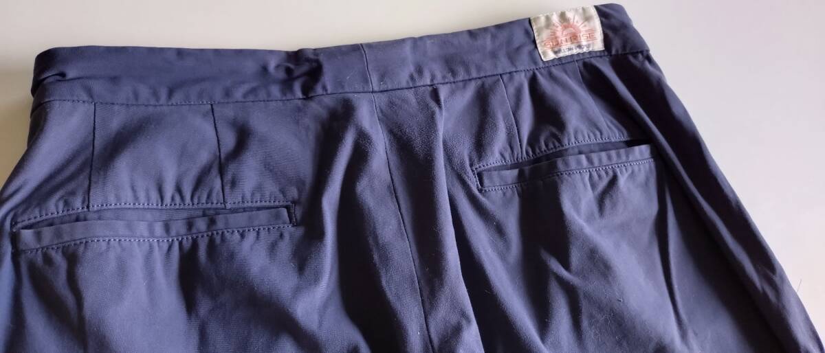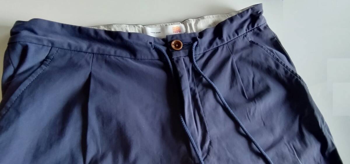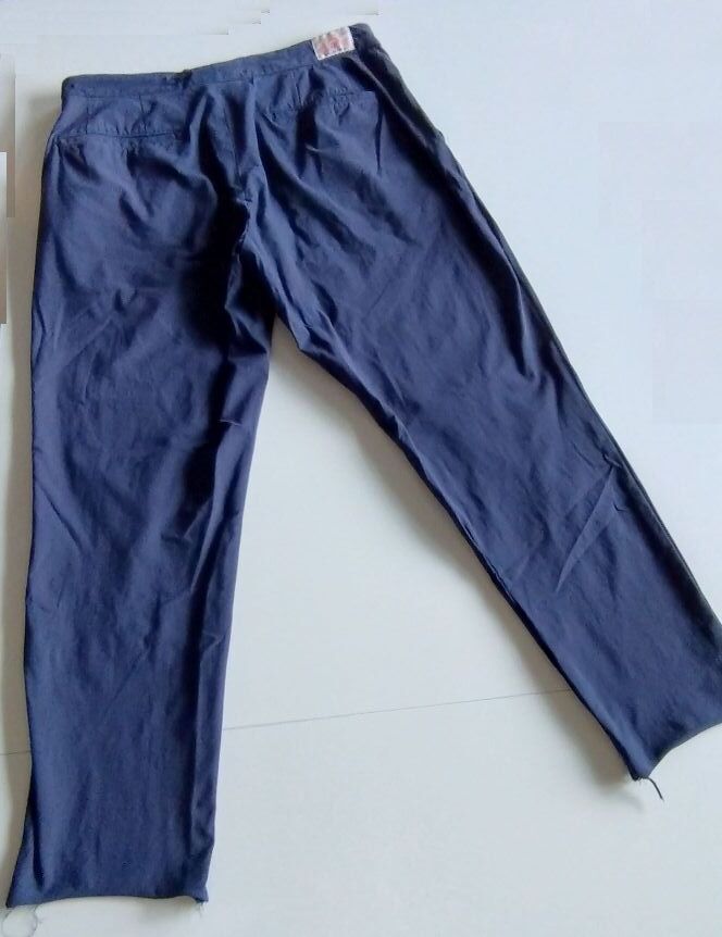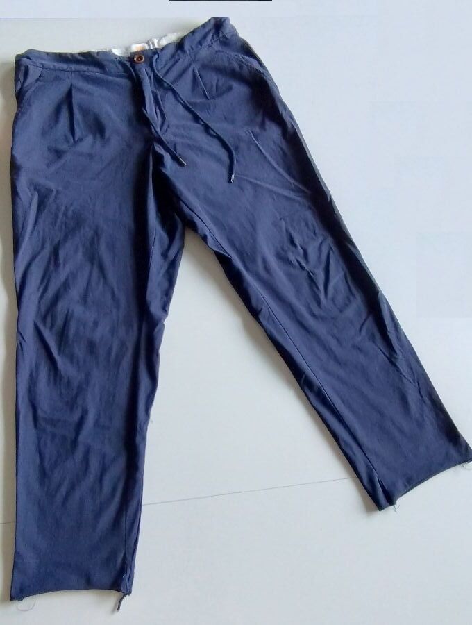 DELTA デルタ シンプルな紺色のズボンです。 ウエストは紐調整です。 裾は切りっぱなしになっています。 紐のループ穴にほつれが見られます。 ひざあたりに補修跡があります。 お尻に毛羽立ちが少しありますが、 目立つ汚れは見当たりません。 カラー;紺色 素材;ナイロン85%・ポリウレタン15% サイズ;M ウエスト約78cm前後・ズボン丈約88cm、股下約64cm |
