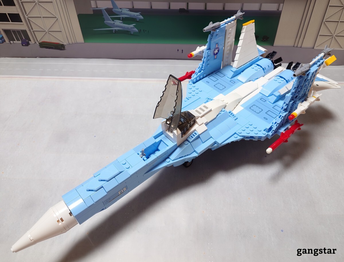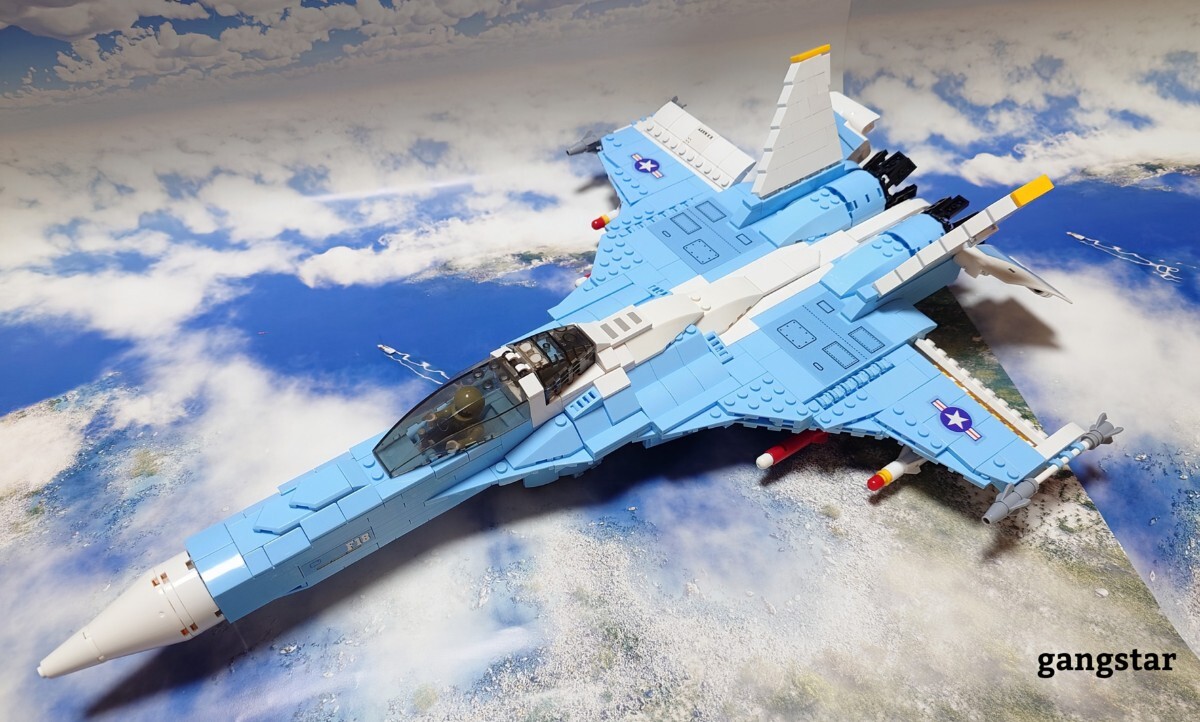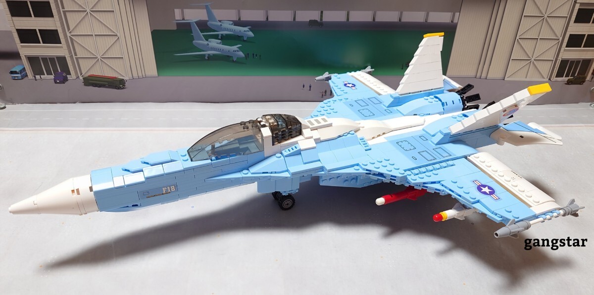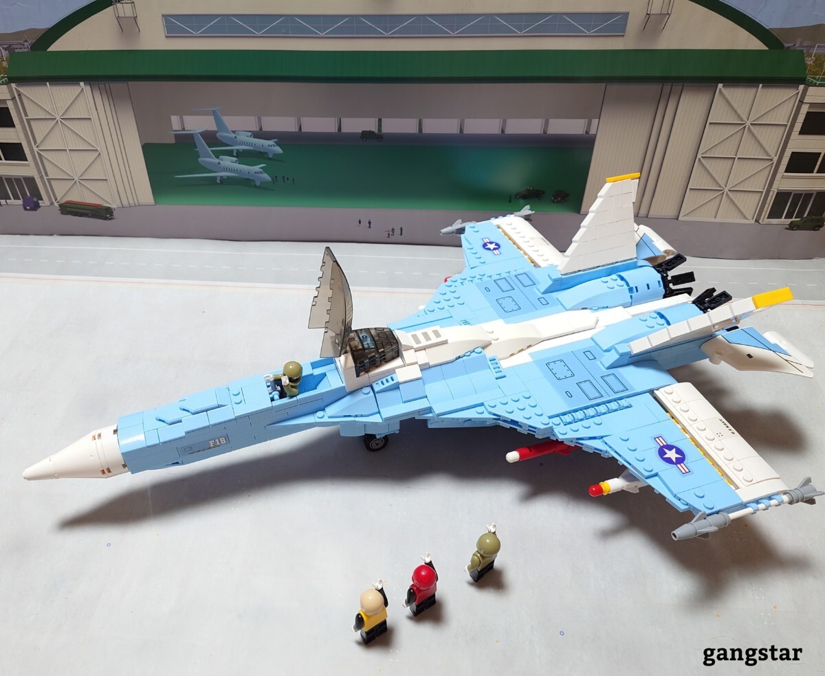 アメリカをはじめ、各国で使用されております、F/A-18 ホーネット 戦闘機のブロック模型です。こちらはスカイブルーカラーになります。兵士4名が付属します。
