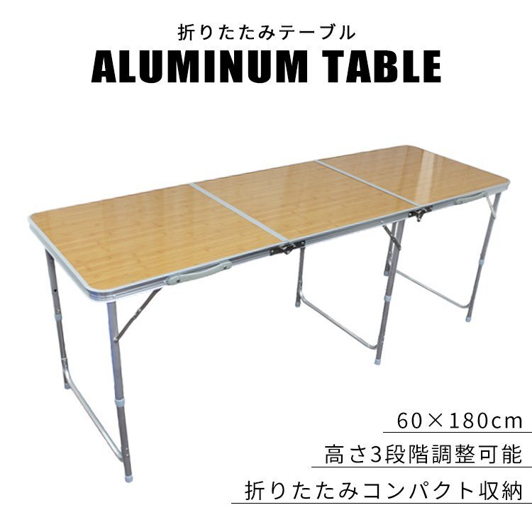 かんたん組立の折りたたみ式アウトドアテーブル(4~6人用)です。 コンパクトサイズの180cm×60cm!! サビに強いアルミを使用! 天板には防水加工が施されています。 必要のない時は折りたたんで収納できる! 取っ手付きで持ち運びもラクラク♪ 高さは「ハイスタイル」「ミドルスタイル」「ロースタイル」の3段階調節。 お好みや用途に合わせて使い分けることができる嬉しい仕様♪ キャンプ、バーベキュー、お花見などにとても便利! ■商品コード:A61C004 ■商品仕様 カラー:ベージュ(バンブー) サイズ:(約)幅180×奥行60×高さ55/62/70cm 収納サイズ:(約)60×60×6.5cm 重量:(約)7.2kg 耐荷重:(約)20kg ■内容 テーブル本体、パラソル固定パーツ×1 ■注意事項 ・初めてご使用の場合、耐久性を高めるために天板がフラットにならず山なりになっております。 適度な力で上から押していただくと改善されますので、お試しください。初期不良ではございません。 ・海外製品で、簡易梱包での輸入のため風防に擦れや多少の小キズなどがある場合がございますが、 商品自体には問題ありませんのでご了承下さい。 ・商品は、モニターによって色合いが異なって見える場合があります。 ・仕様・デザインは改良のため予告なく変更することがあります。 ■保障期間 7日間 ※商品到着後7日以内の初期不良・破損のみご対応させていただきます。 【新品未使用品です】 |