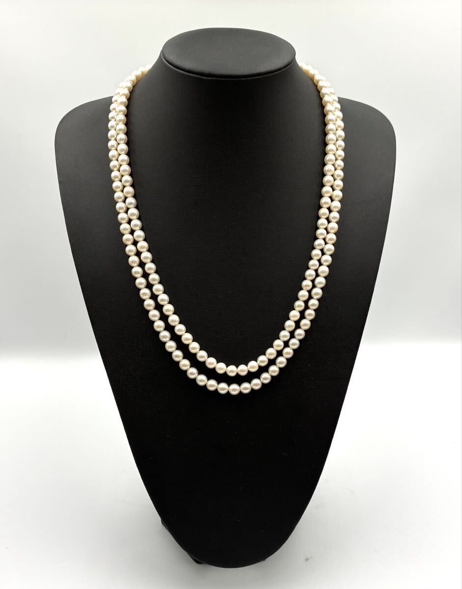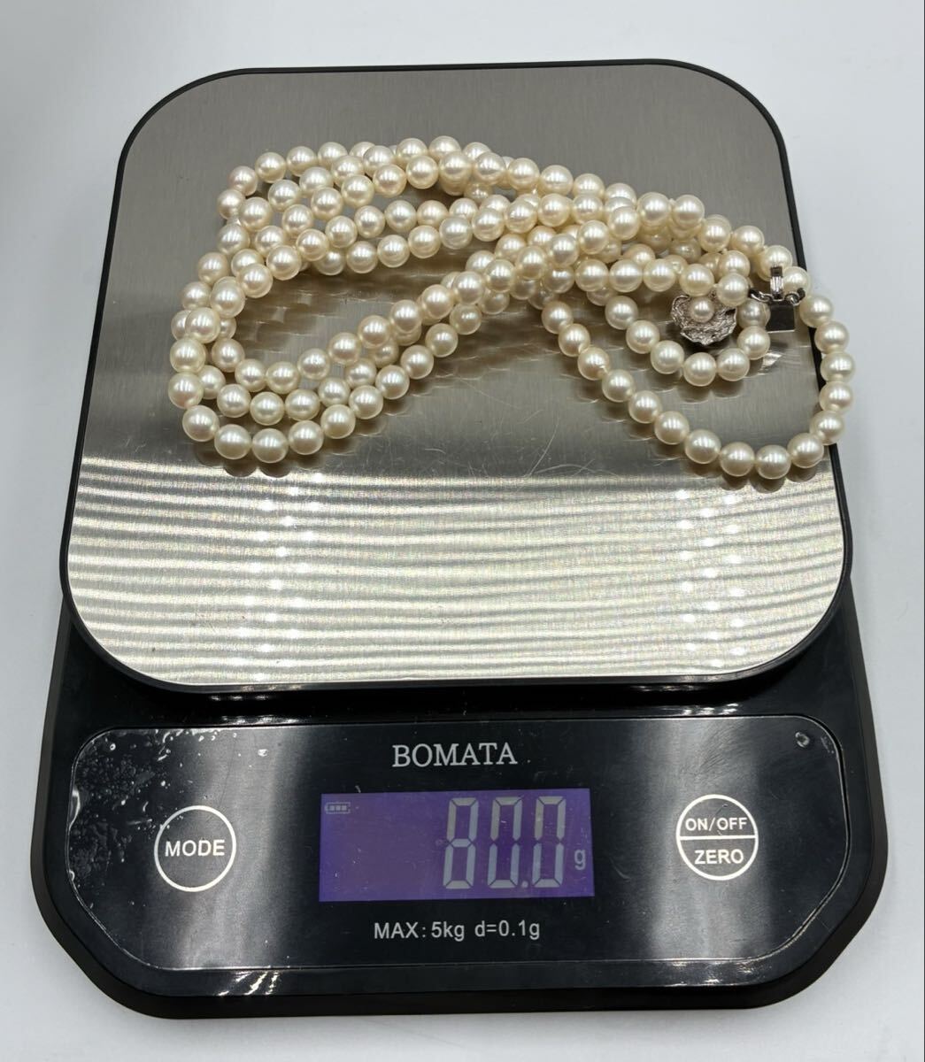 1円スタート アコヤ 真珠 淡水 パールネックレス ロング 留め具シルバー レディース アクセサリー 総重量80.0g AA0930-32