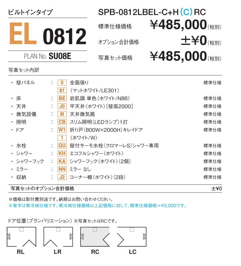 ◆ドア位置は、RL・LR・RC・LCの4通りから選択できます。