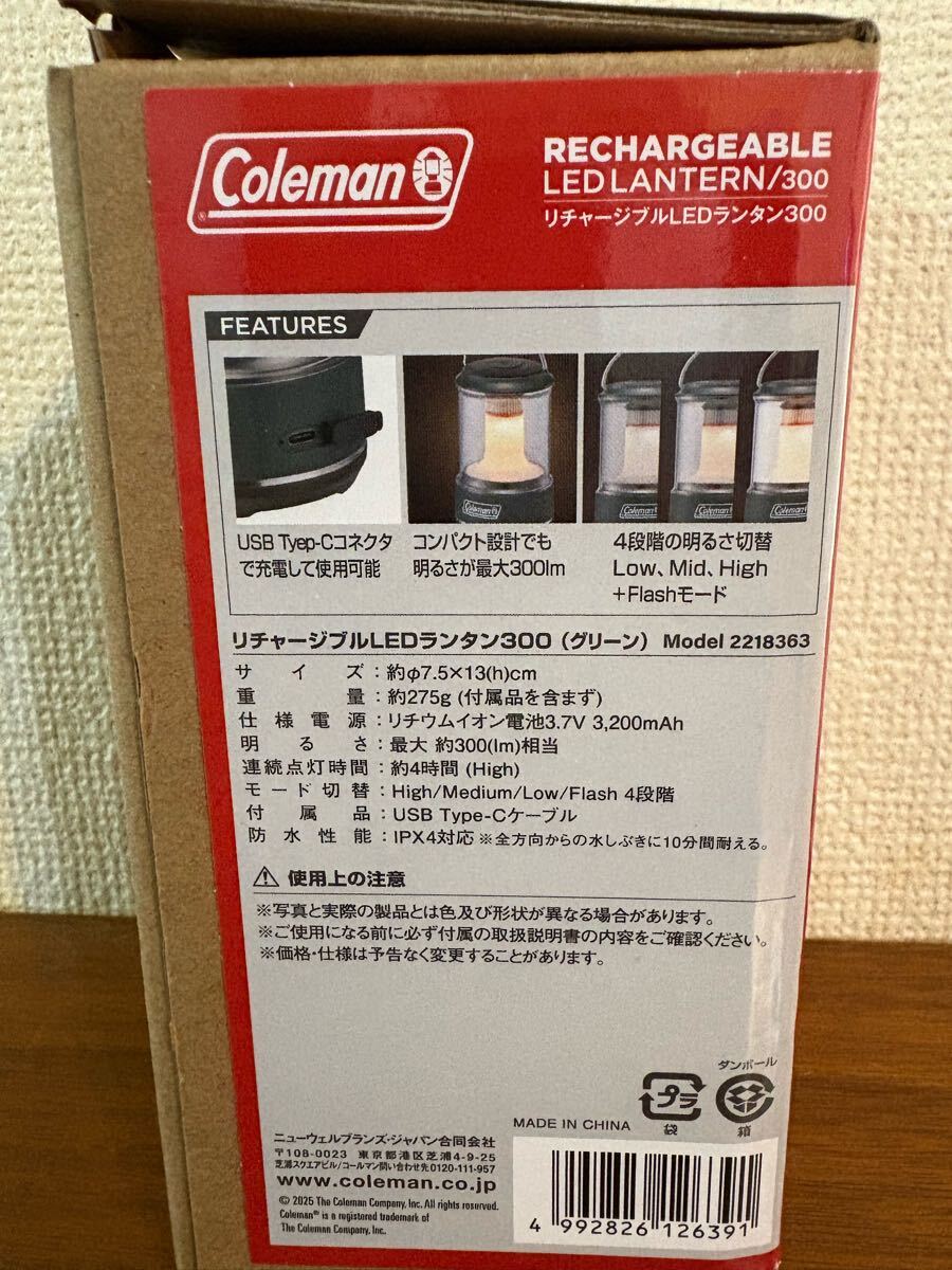 くり返し使用できる充電式バッテリーを搭載。明るさ最大300lmで4段階調節可能