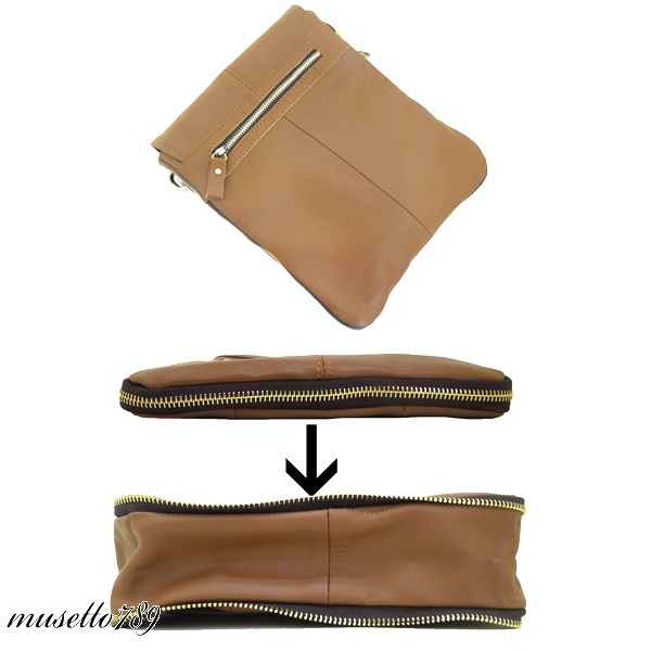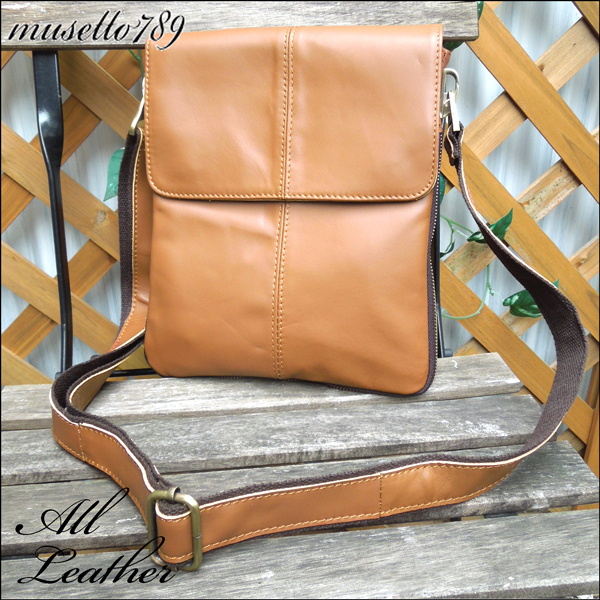 全本牛革!◆全レザーショルダーバッグ キャメル◆ヌメ革 1円~ ジッパーでマチ幅調整可能!ライトブラウン 本革鞄 オイルレザー 910r