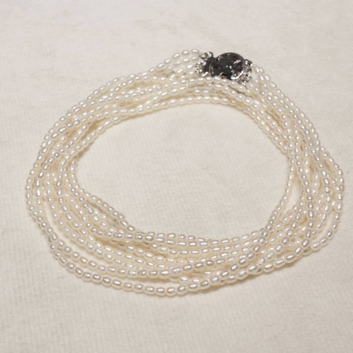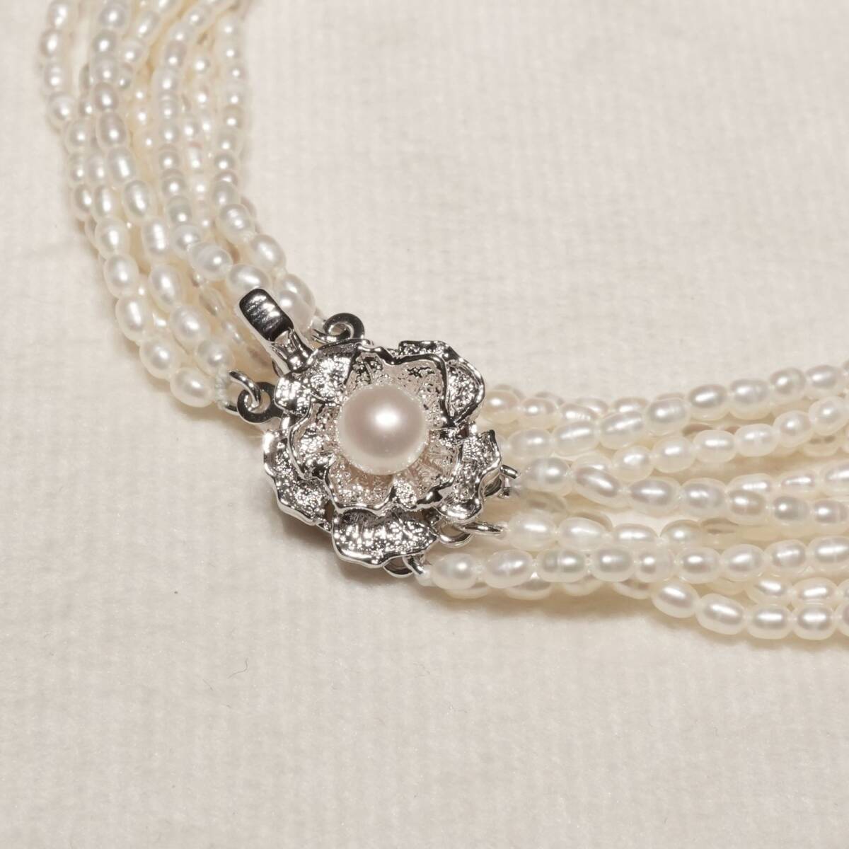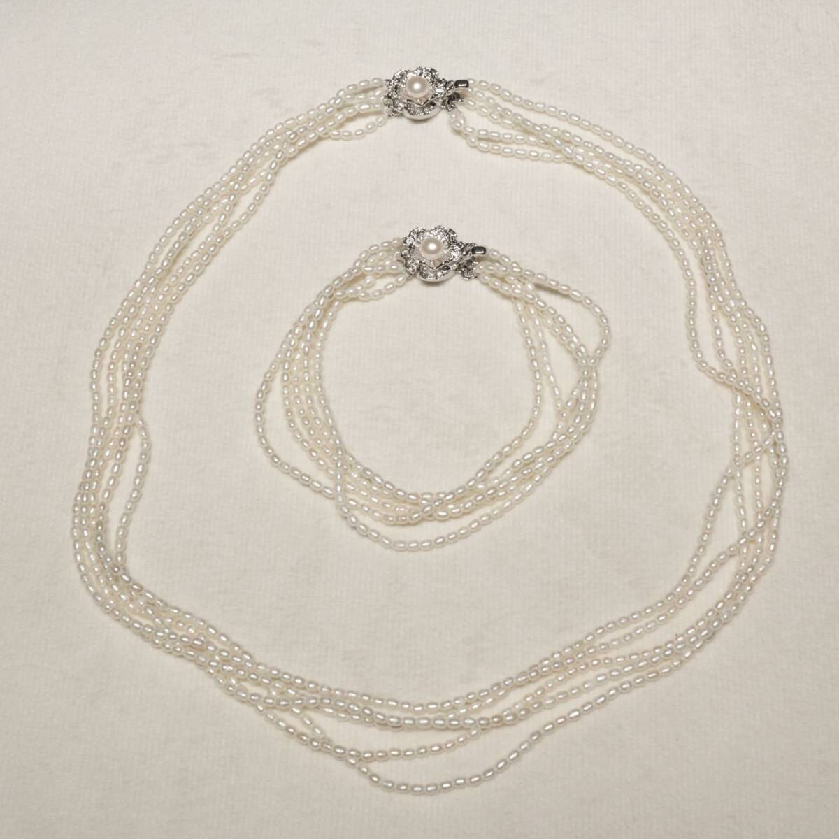 シルバー 淡水パール 5連 ブレスレット セット ネックレス/25-47M