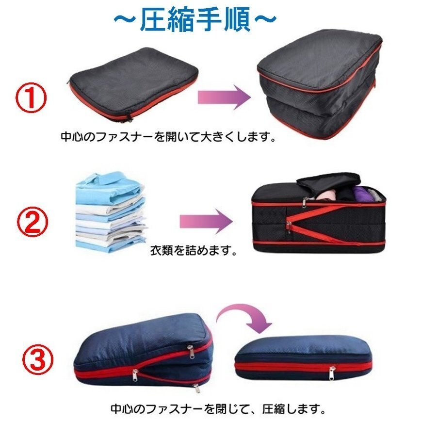 圧縮トラベルポーチ 【ブラック/Sサイズ】 旅行ポーチ 圧縮袋 ファスナーを閉めるだけ圧縮 トラベルポーチ 衣類圧縮袋 撥水 【LB-136】 | |||||||||||