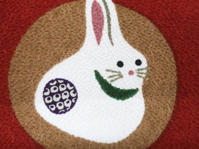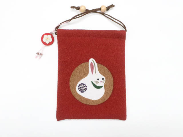 《京都一輝堂》リサイクル着物 和装小物 和雑貨 巾着 兎 縮緬 25w09-11492