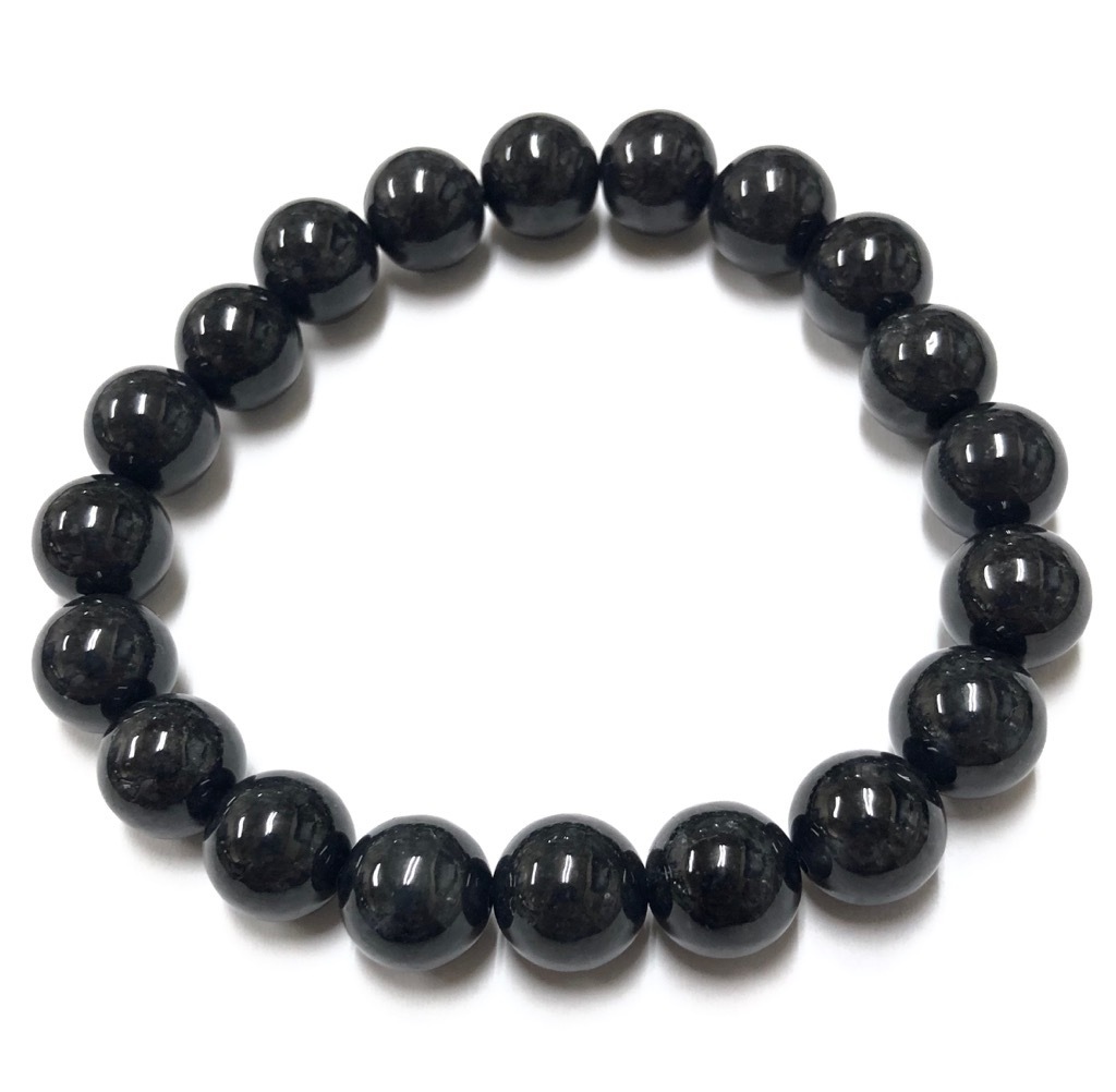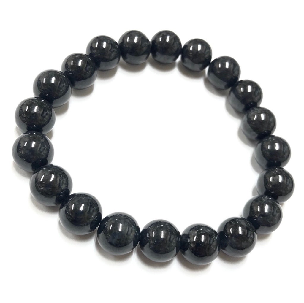 「仁・義・礼・智・信」の5つの徳を備えた石として、持ち主に天の叡智を授け、意識を高め、人徳を与える効果があるといいます。 指導的な立場の人が身につけると、多くの人々から敬意を払われ、支持を得ることができるでしょう。 また、古来より「奇跡の石」と呼ばれ、護符としても珍重されてきました。 黒翡翠:約10mm 内寸:約16.5cm | ||