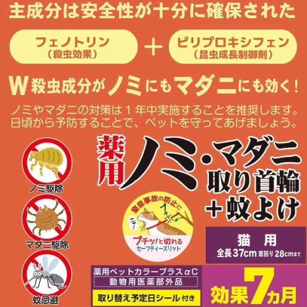 商品説明 | ノミ・マダニの駆除プラス蚊よけが出来る猫用首輪。 ・マダニ駆除効果がプラスになった猫用ノミ取り首輪 ・蚊よけ効果もあり ・効果は1カ月増えて、7ヶ月間持続 ・動物用医薬部外品 ・ベルトとバックルは人気のくすみカラーを採用 生産地:日本 サイズ:パッケージサイズ:W87×H160×D18mm/重量31g 素材:本体:PVC 主成分:フェノトリン、ピリプロキシフェン メーカー名:ドギーマンハヤシ 株式会社 |