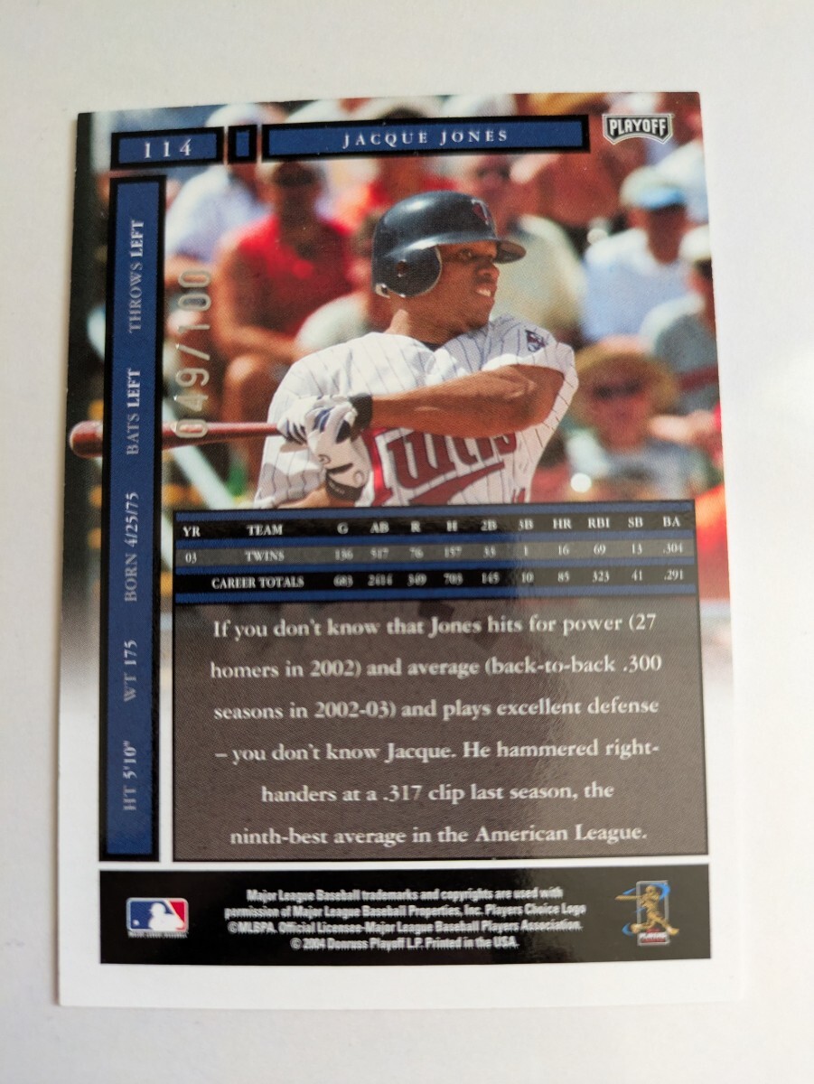 Jacque Jones 2004 Donruss Playoff Honors Auto /100 Twins