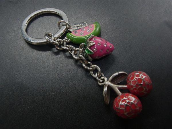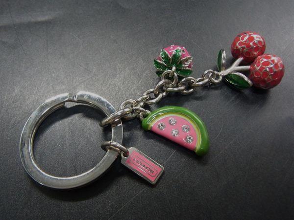 ■美品■ COACH コーチ ラインストーン フルーツ 果物 キーリング キーホルダー バッグチャームシルバー系×ピンク系 DI6318