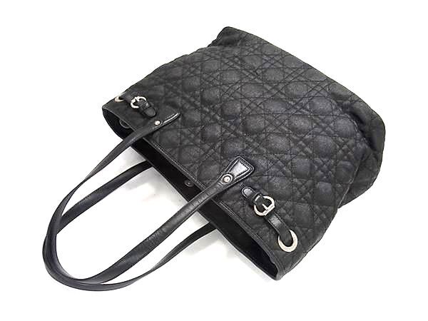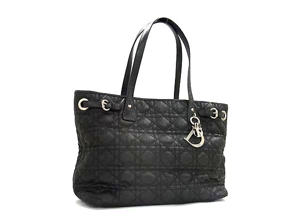 1円 ChristianDior ディオール レディディオール カナージュ レザー ハンドバッグ トート ショルダー 肩掛け ブラック系 BQ1400
