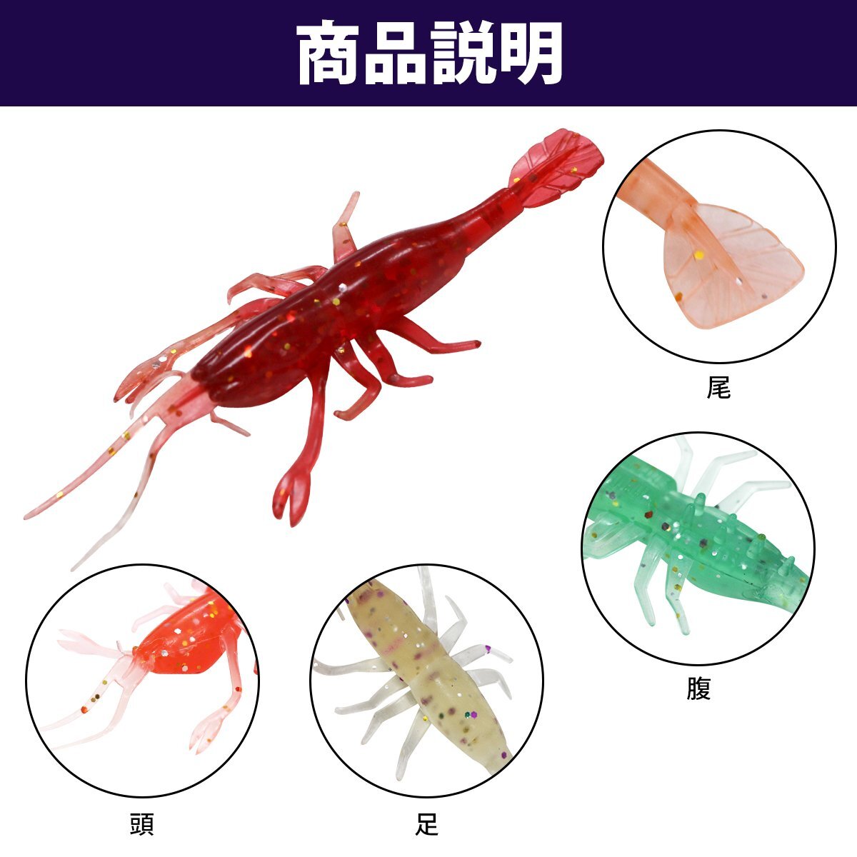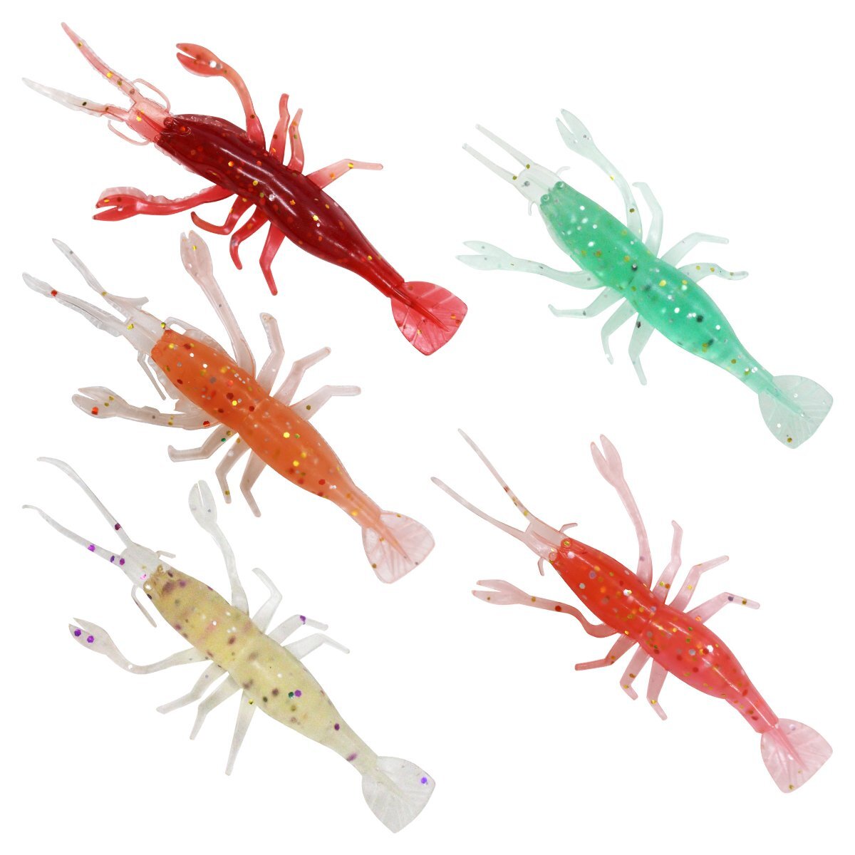 『訳あり』 5個セット エビ型ワーム 8cm/80mm ルアーセット ルアー 中型 5色 疑似餌 擬似餌 コチ ヒラメ マダイ アイナメ アコウ