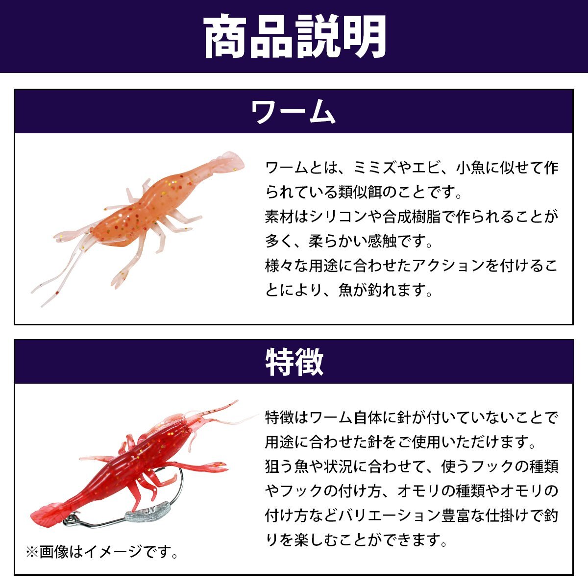 初心者からでも使いやすいエビワームです。