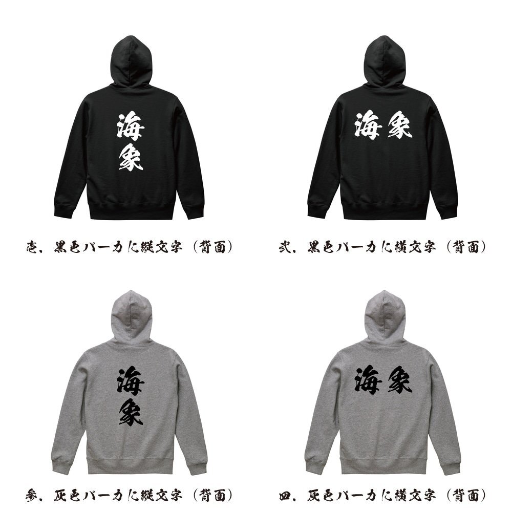 海象 (セイウチ) オリジナル パーカ 書道家が書く プリント フルジップ パーカー S M L XL XXL 110 130 150 【 動物・昆虫 】
