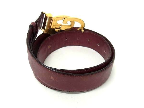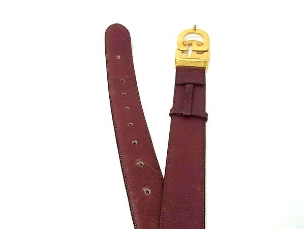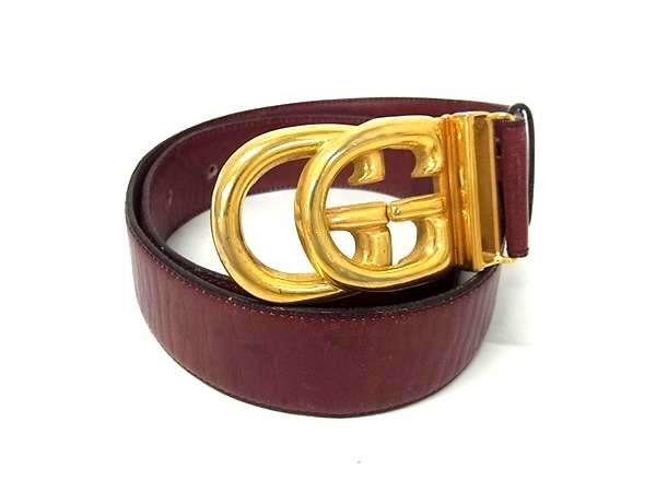 1円 GUCCI オールドグッチ ヴィンテージ レザー ゴールド金具 ベルト 表記サイズ 80 レディース メンズ ボルドー系 FS5275