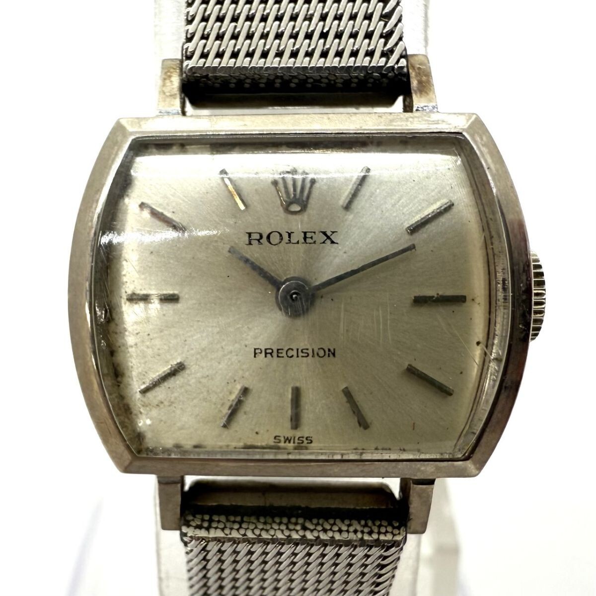 取り扱っている商品は未使用・未開封も含め、全て一度は人の手に渡った一点ものの中古・ジャンク扱いでの商品です。 当方素人ですので肉眼で確認できる簡易的な検品、採寸、および簡易梱包となります。 ※稼働の記載につきましては秒針等の確認のみとなり、全体の動作を保証するものではございません。 また、出品時の中古品の動作状況となりますので、予めご了承の上でご入札ください。 不動の表記につきましてはクォーツ式のムーブメントの場合、動作未確認の状態となります。 電池交換後、不具合があった場合でも返金、返品の対象とはなりませんので、予めご了承くださいますようお願い致します。 細かな日差、オーバーホール状況、社外パーツの使用に関しては保証しかねますので、ご理解いただけた上でのご入札をお願い致します。 上記を踏まえた上で中古品、ジャンク商品として出品させていただいておりますので、全てご理解いただけた上でのご入札をお願いいたします ------------------------------------------------------------------------- 【メーカー】 ROLEX ロレックス 【モデル名】 PRECISION プレシジョン 【型番】 2199 Cal.1400 【シリアル】 1631983 【サイズ】 直径約19mm 腕回り約-cm 【付属品】 画像参照 【稼働状態】 稼働 【その他状態】 リューズ動作 時間:OK 日付: 曜日: ------------------------------------------------------------------------- 画像にあるものが全てです。 他詳細は画像にてご判断ください。 ※目立つ傷や汚れを中心に写真を撮っておりますが、画像に写りきっていない傷等がある場合もございます。予めご了承ください。 ※商品を多数出品している関係で、稀に商品説明や画像に誤りがある場合がございます。予めご了承ください。 こちらのページをご覧いただく際は、商品説明文と掲載している画像の全てを確認いただいた上でご入札ください。 | |||||||