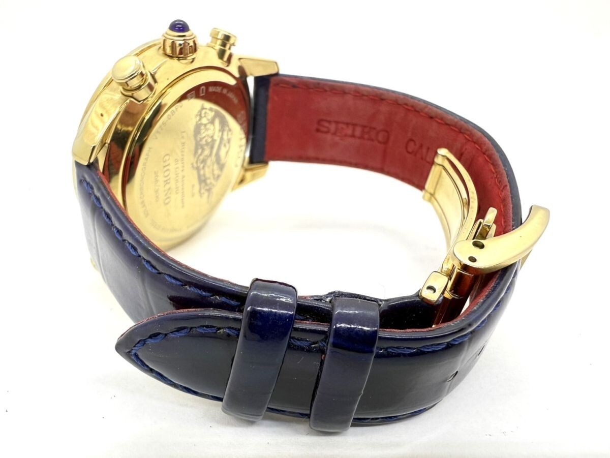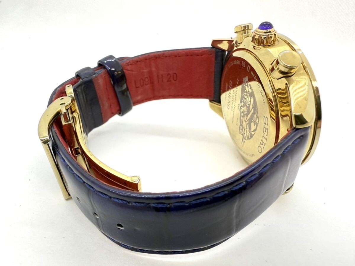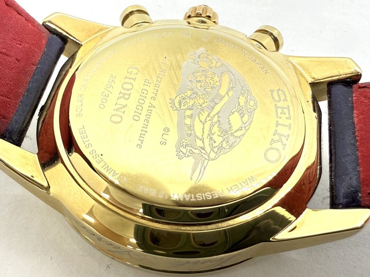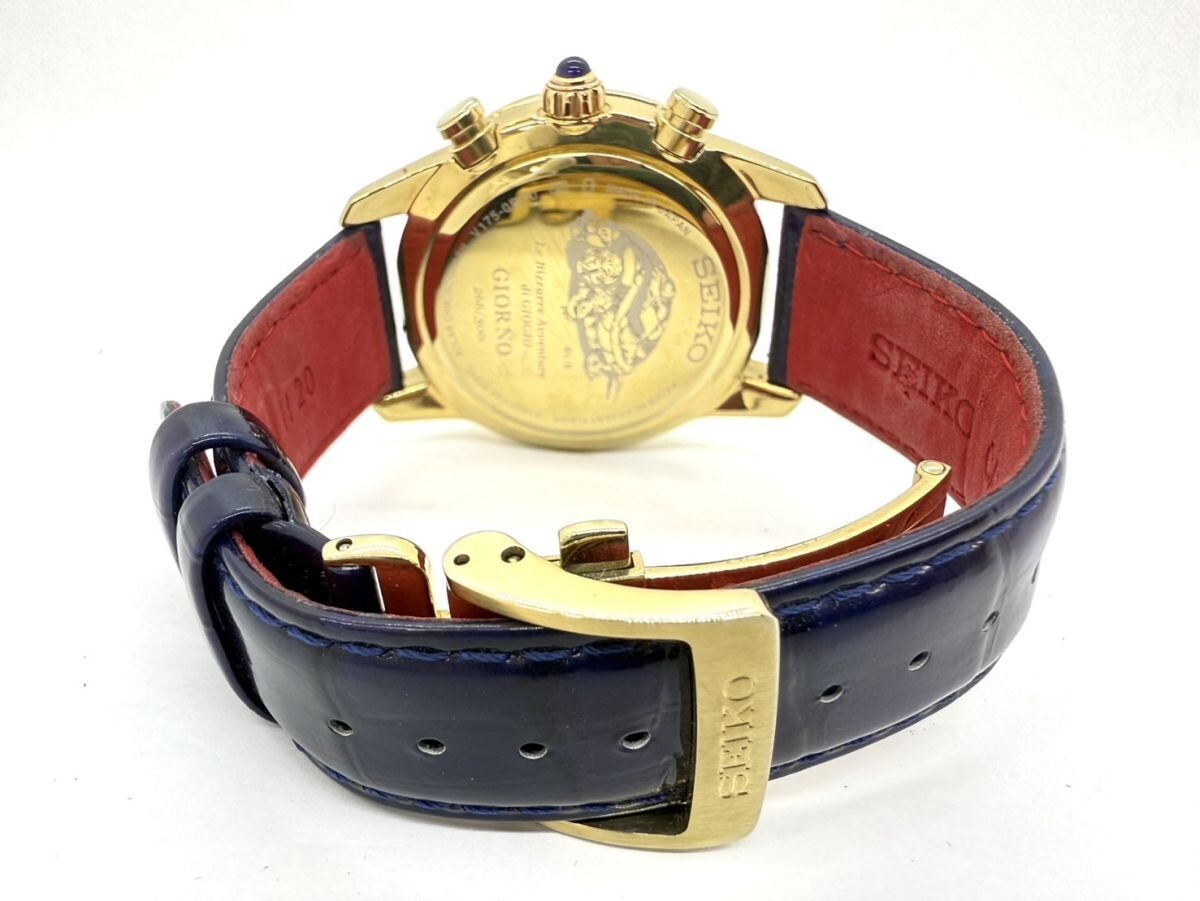 取り扱っている商品は未使用・未開封も含め、全て一度は人の手に渡った一点ものの中古・ジャンク扱いでの商品です。 当方素人ですので肉眼で確認できる簡易的な検品、採寸、および簡易梱包となります。 ※稼働の記載につきましては秒針等の確認のみとなり、全体の動作を保証するものではございません。 また、出品時の中古品の動作状況となりますので、予めご了承の上でご入札ください。 不動の表記につきましてはクォーツ式のムーブメントの場合、動作未確認の状態となります。 電池交換後、不具合があった場合でも返金、返品の対象とはなりませんので、予めご了承くださいますようお願い致します。 細かな日差、オーバーホール状況、社外パーツの使用に関しては保証しかねますので、ご理解いただけた上でのご入札をお願い致します。 上記を踏まえた上で中古品、ジャンク商品として出品させていただいておりますので、全てご理解いただけた上でのご入札をお願いいたします ------------------------------------------------------------------------- 【メーカー】 SEIKO セイコー 【モデル名】 スピリット ジョジョ ジョルノ ジョバーナ 限定モデル 【型番】 V175-0BP0 【シリアル】 266/300 【サイズ】 直径約39mm 腕回り約-cm 【付属品】 画像参照 【稼働状態】 稼働(電池残量不明) 電池切れの挙動あり 【その他状態】 リューズ動作 時間:OK 日付:OK 曜日: クロノグラフ:針は動きますが、挙動に難あり(電池切れのためかどうかは不明となります。) ------------------------------------------------------------------------- 画像にあるものが全てです。 他詳細は画像にてご判断ください。 ※目立つ傷や汚れを中心に写真を撮っておりますが、画像に写りきっていない傷等がある場合もございます。予めご了承ください。 ※商品を多数出品している関係で、稀に商品説明や画像に誤りがある場合がございます。予めご了承ください。 こちらのページをご覧いただく際は、商品説明文と掲載している画像の全てを確認いただいた上でご入札ください。 | |||||||