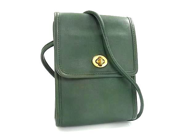 1円 ■美品■ COACH コーチ オールドコーチ ヴィンテージ USA アメリカ製 レザー クロスボディ ショルダーバッグ グリーン系 BS0831