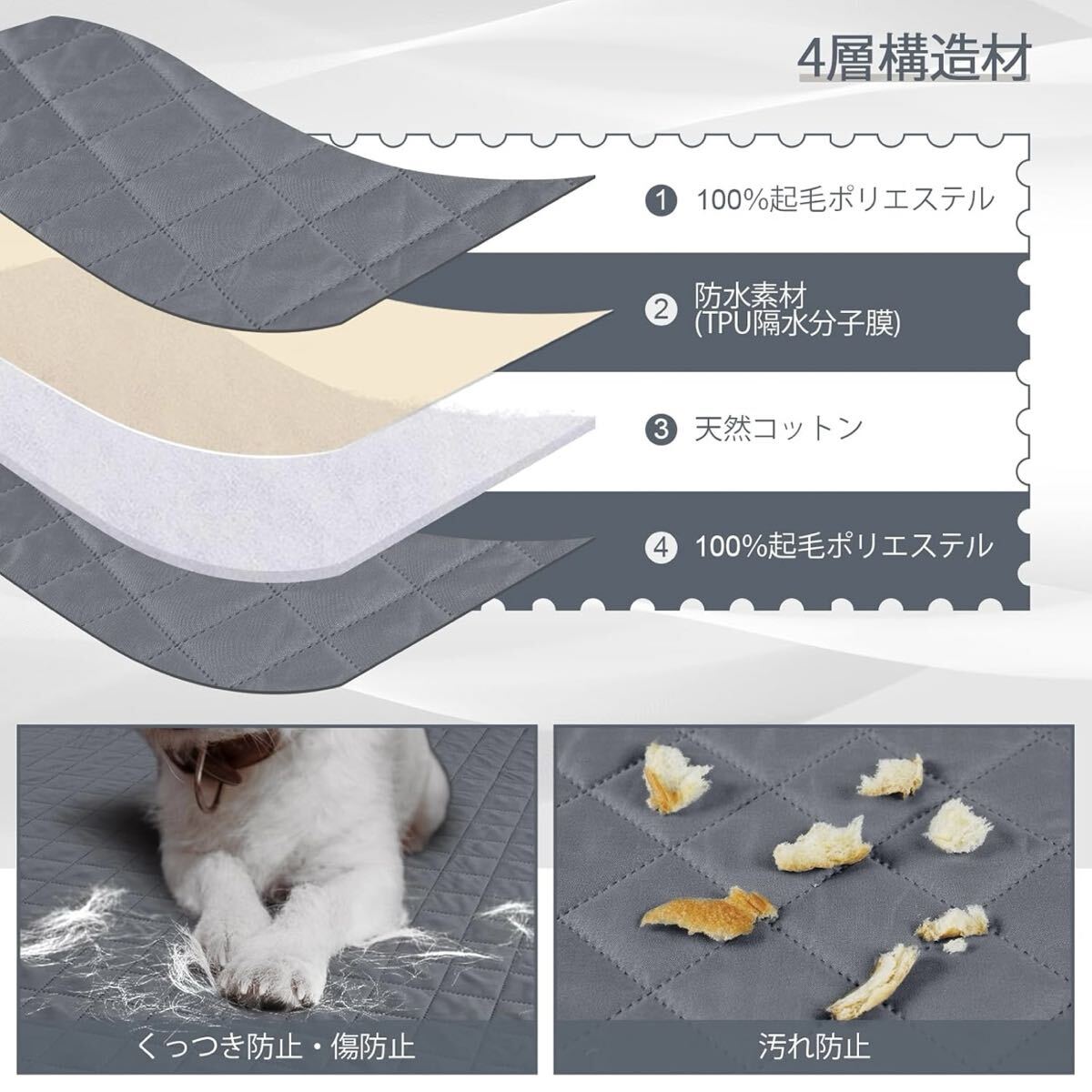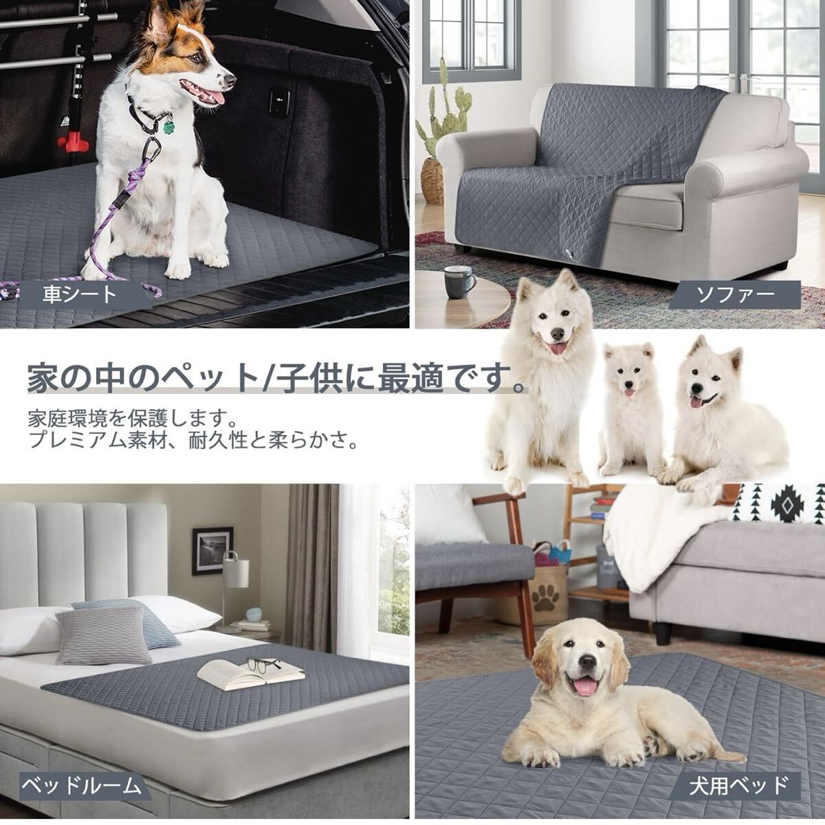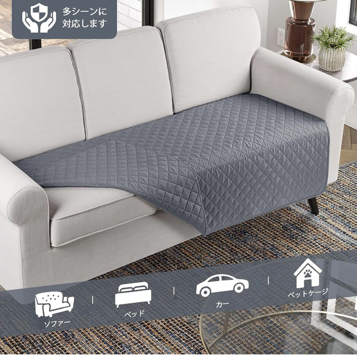 ソファパッド ソファカバー ソファーシート マルチカバー ベッドカバー 防水 リバーシブル 犬猫対策 毛髪不粘着 防塵 汚れ防止 傷防止 爪とぎ防止 腕白防止 四季適用 撥水加工 丸洗い可能 ベッド ペットホーム ブランケット カウチ L字 ソファー 寝椅子などに適しています(ダークグレー色、107*132センチ)