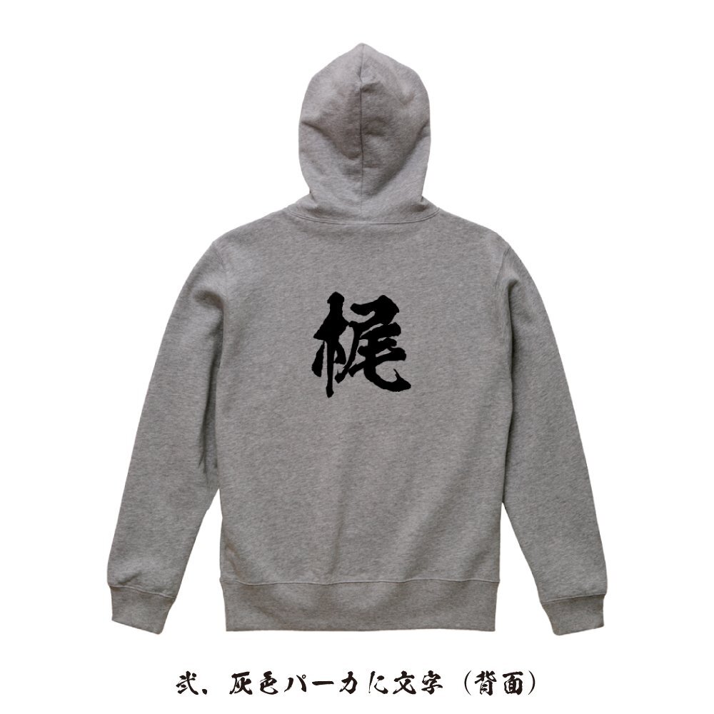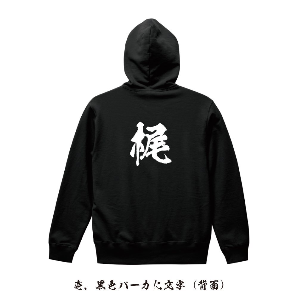 梶 オリジナル パーカ 書道家が書く プリント フルジップ パーカー S M L XL XXL 110 130 150 【 名字 】