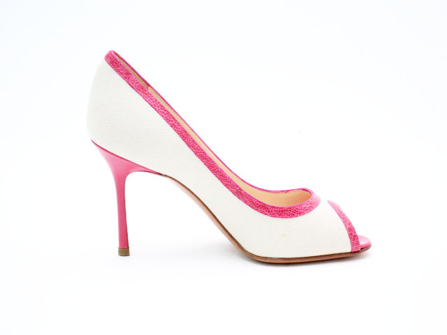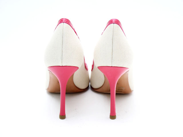 商品説明 | 【管理番号】 007556 【ブランド名】 ヴァレクストラ Valextra 【商品名】 オープントゥパンプス 【サイズ】 37.5 ヒール:約8.5cm 【色・柄】 ベージュ×ピンク 【素材】 キャンバス×レザー 【付属品】 箱 【外観ランク】Sランク | ||