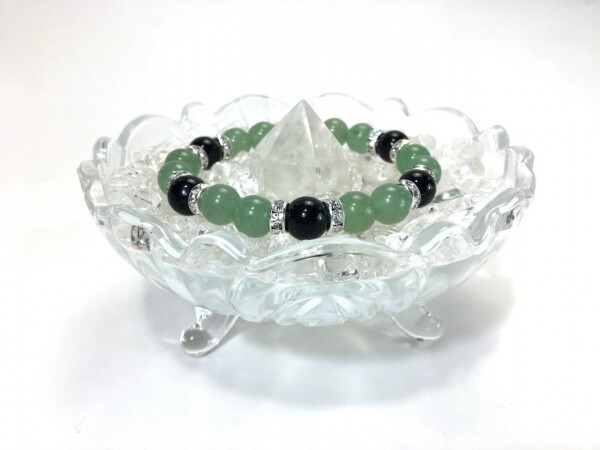 アベンチュリン×オニキス パワーストーン ブレスレット 天然石ブレス 10mm (ロンデル:シルバー) メンズ・レディース 浄化済み