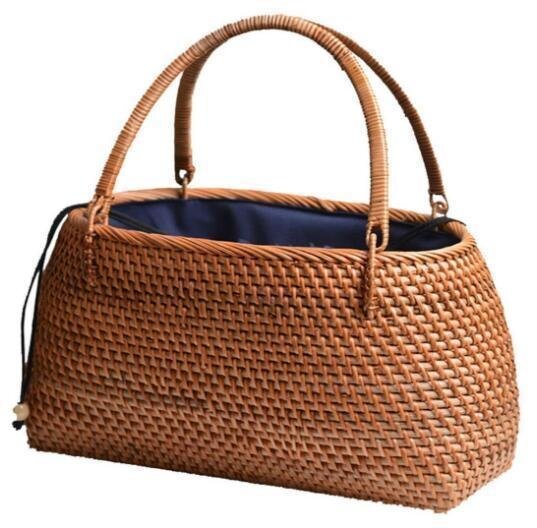 美品★バスケット 収納かご おしゃれ藤籠 編み 取っ手 持ち手  手作りトートバスケット