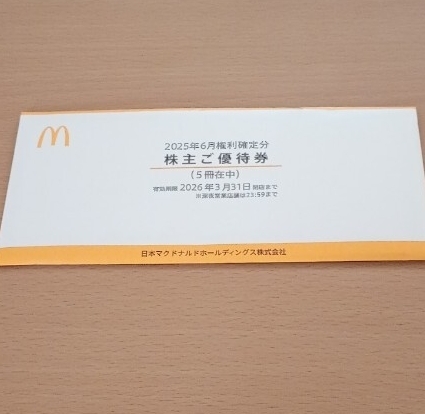マクドナルド株主優待券5冊(6枚つづり×5セット)です。