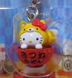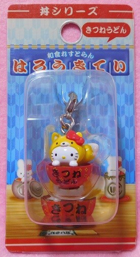 ☆レア☆2003☆和食れすとらん 丼シリーズ きつねうどんバージョン ハローキティ ファスナーマスコット☆根付け