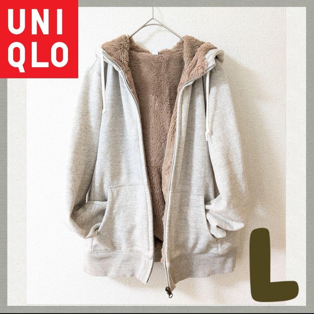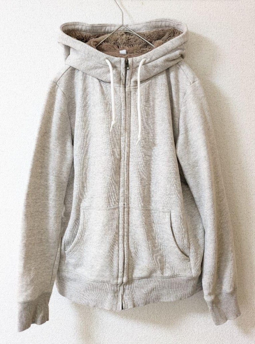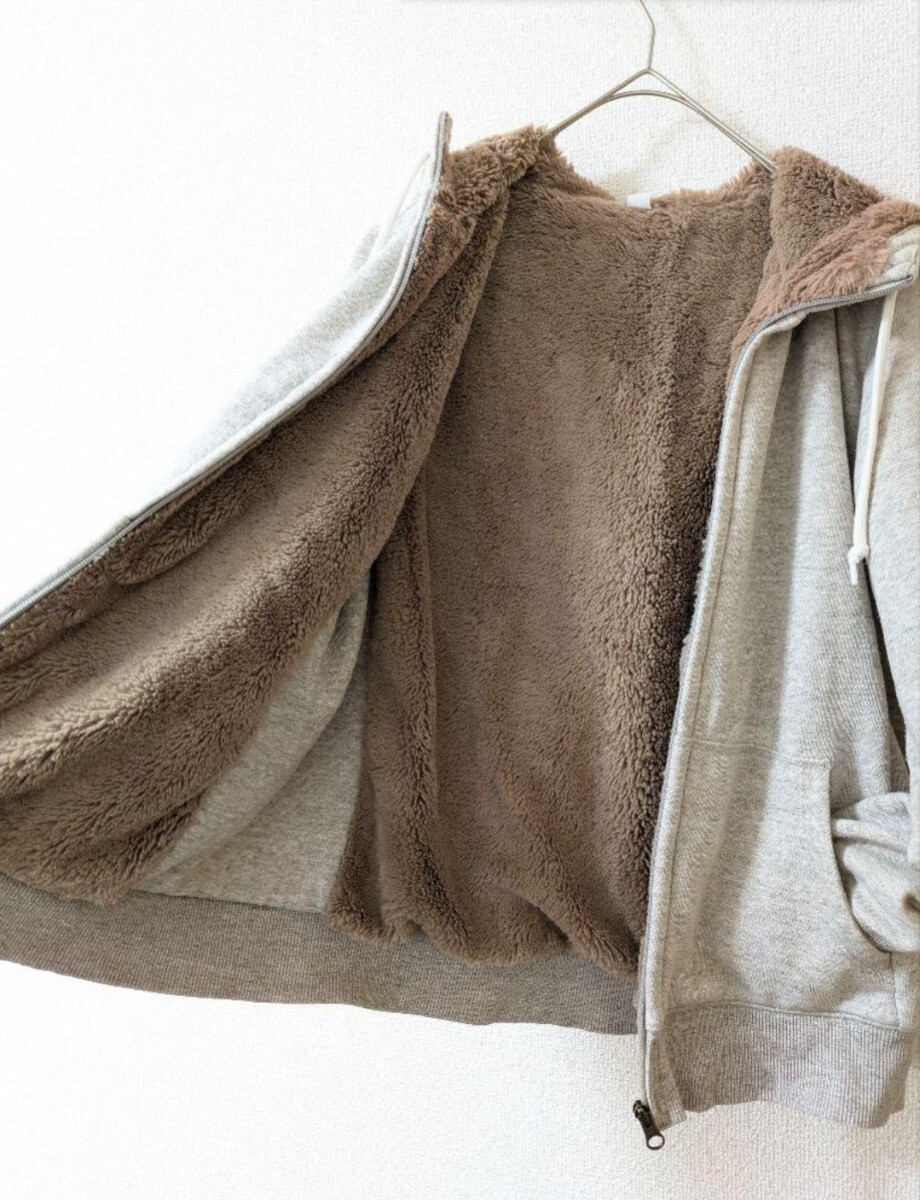 #ユニクロ #シンプル #レディース #UNIQLO #カジュアル #ボアスウェットフルジップパーカー #ボア #スウェット #フルジップパーカー #パーカー #ホワイト #アイボリー #杢 #ベージュ #ブラウン #ふわふわ #もこもこ #フード