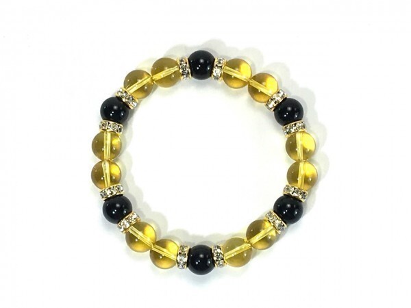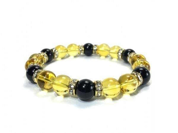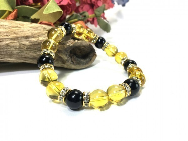 こちらは、シトリンとオニキスを組み合わせたブレスレットです。間にはロンデルを挟み高級感あるデザインに仕上がっています。石大きさは腕にも馴染みやすいように10mm玉で内径約18cm(伸可能)です。数に限りがございますので気になる方はお早めにどうぞ。サイズ調節も可能ですのでサイズ調節の場合は取引ナビにてご一報くださいませ。(サイズ調節無料です)