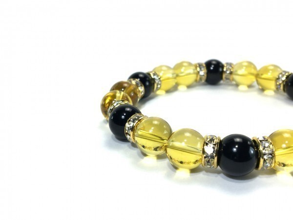シトリン×オニキス パワーストーン ブレスレット 天然石ブレス 10mm (ロンデル:ゴールド) メンズ・レディース 浄化済み