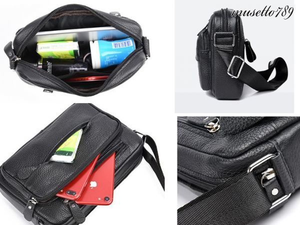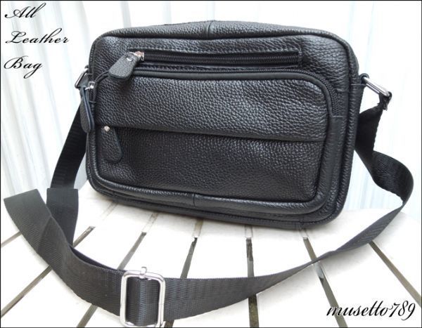 本牛革◆全バッファローレザーショルダーバッグ ◆黒 限定 鞄 使い勝手抜群!サコッシュ 柔らかな本革 新作 ボディブラック 男女兼用 771f