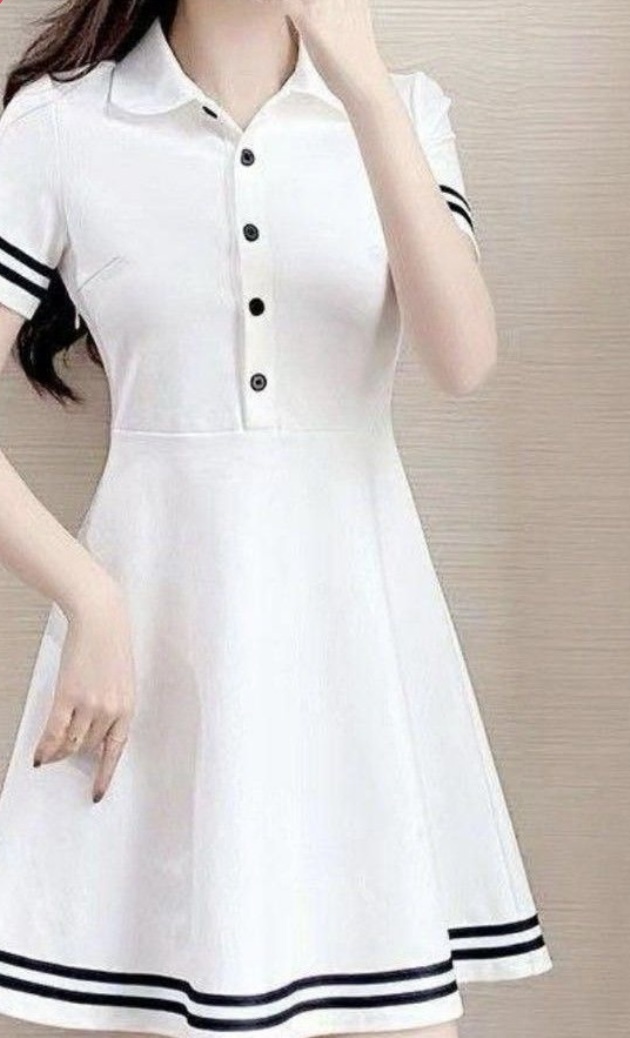 白の生地に袖と裾の黒いラインがアクセントになって可愛い