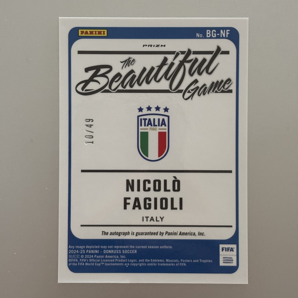 49シリ Nicolo Fagioli 直筆サイン Prizm The Beautiful Game パラレル Auto ニコロ・ファジョーリ 2022-23 Panini Donruss Soccer F.Joe